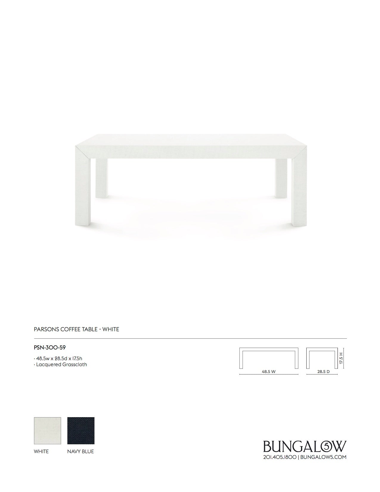 The Villa & House Parsons Coffee Table in Chiffon White is crafted in textured grasscloth in a classic Parsons shape. Combining architectural structure and natural texture, the sleek, rectangular design makes a striking statement in your living room or office.