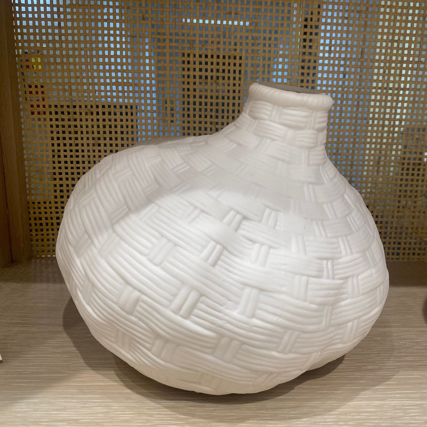 Crafted from Blanc de Chine Porcelain, the Tamarindo Medium Vase by Villa & House features a delicate woven pattern that has been carefully handpicked for a stunningly detailed surface. Resembling soft-form bags made of reed, this vase exudes elegance.