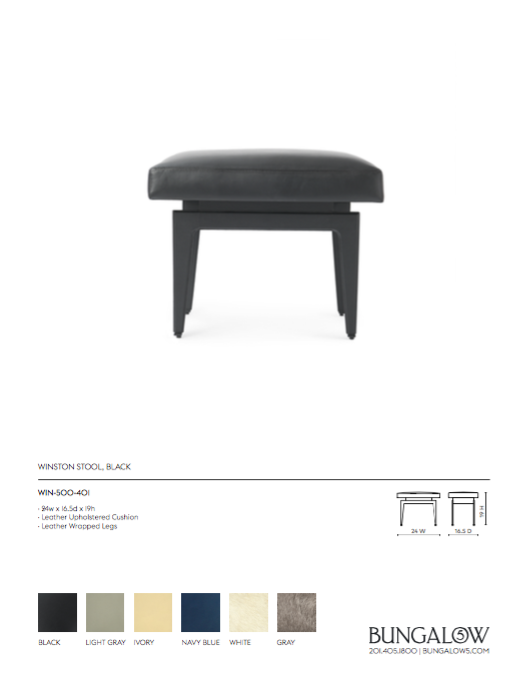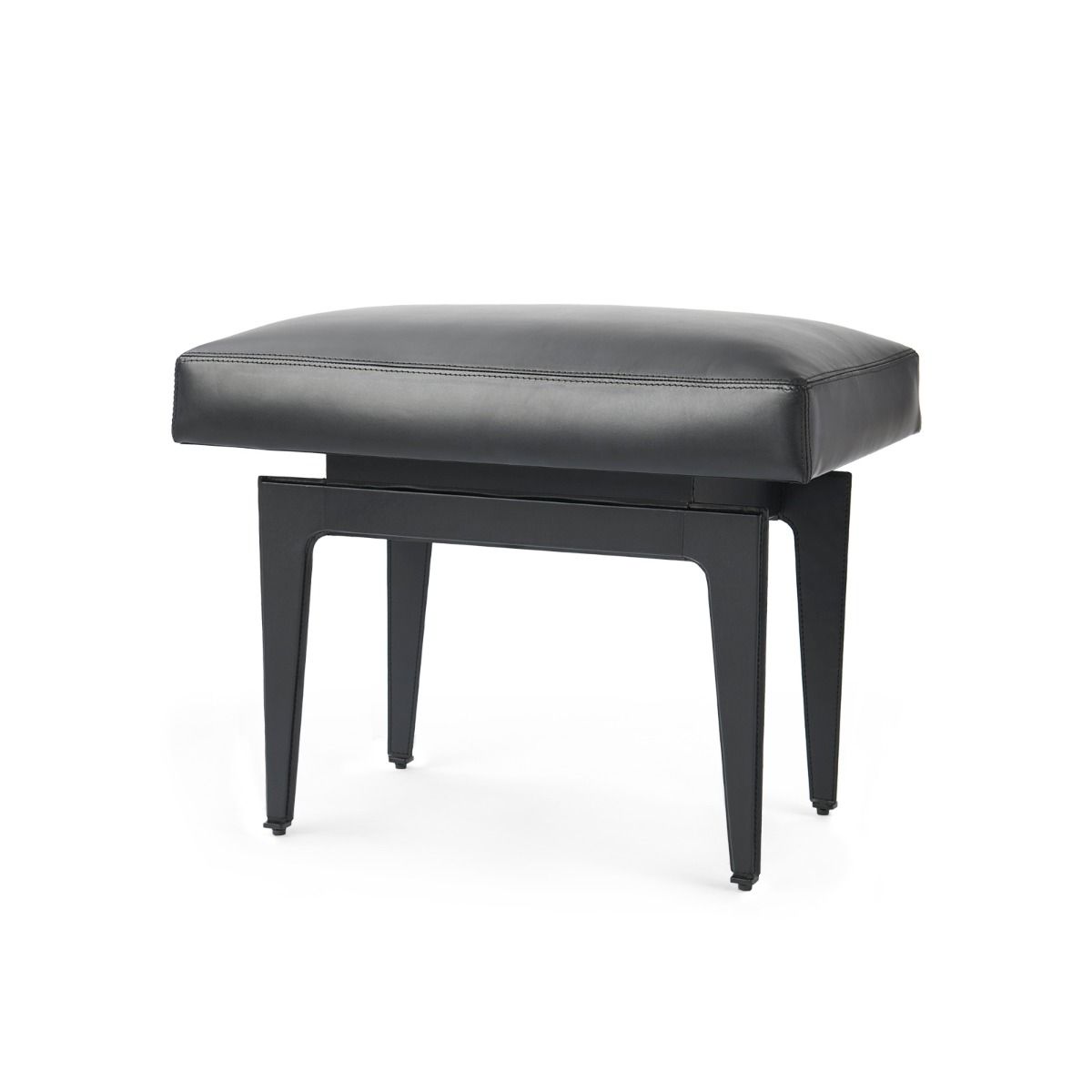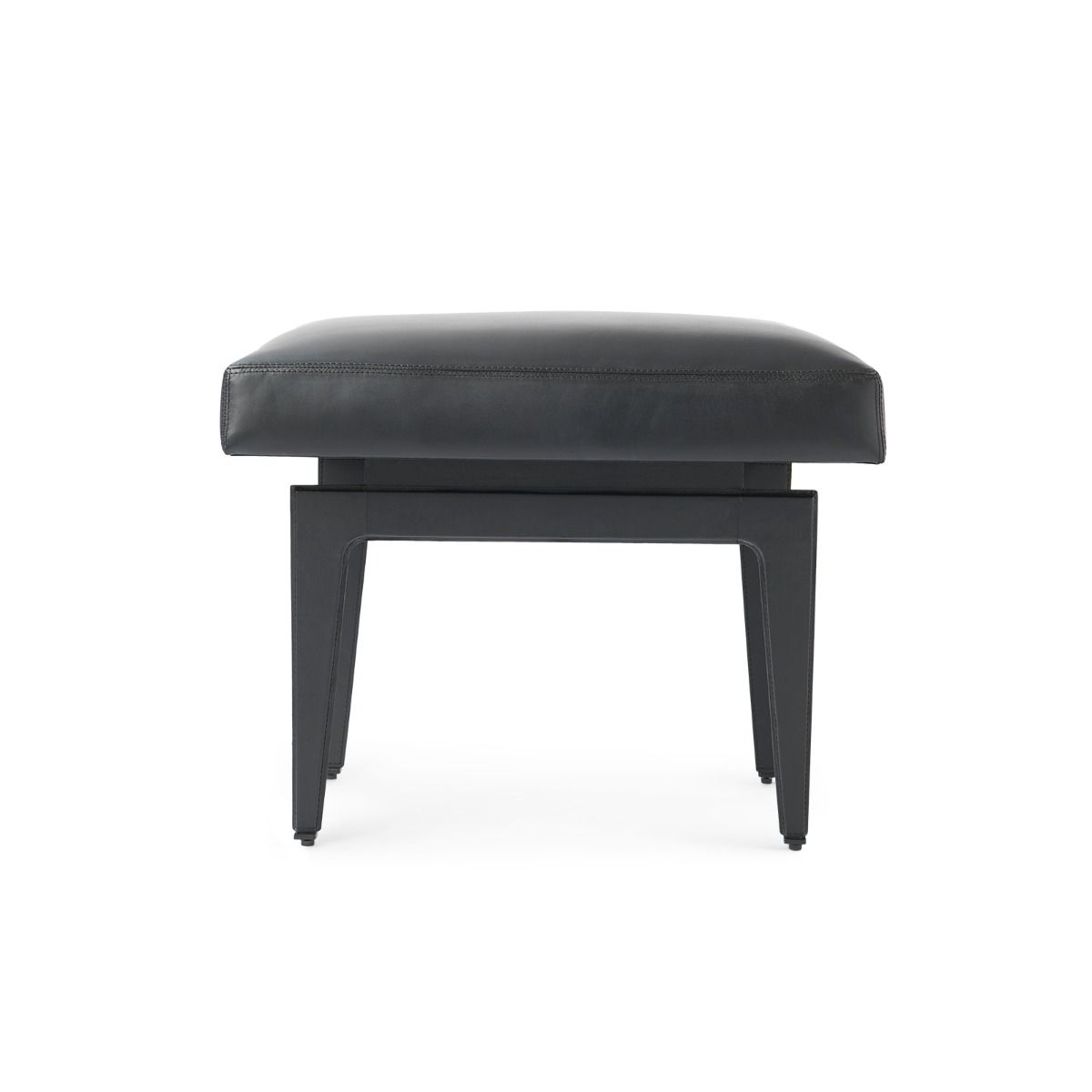 The materials used in the Winston Stool in Black Leather from Villa & House give the modernist-looking piece a stylish update. A top-grain leather cushion, unerringly stitched, displays the quality of the craftsmanship.