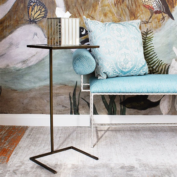 Worlds Away's Cigar Table Square features an elegant antique mirrored top in a compact bronze frame. Ideal for adding sophistication to any space, whether it's in a home or office setting.