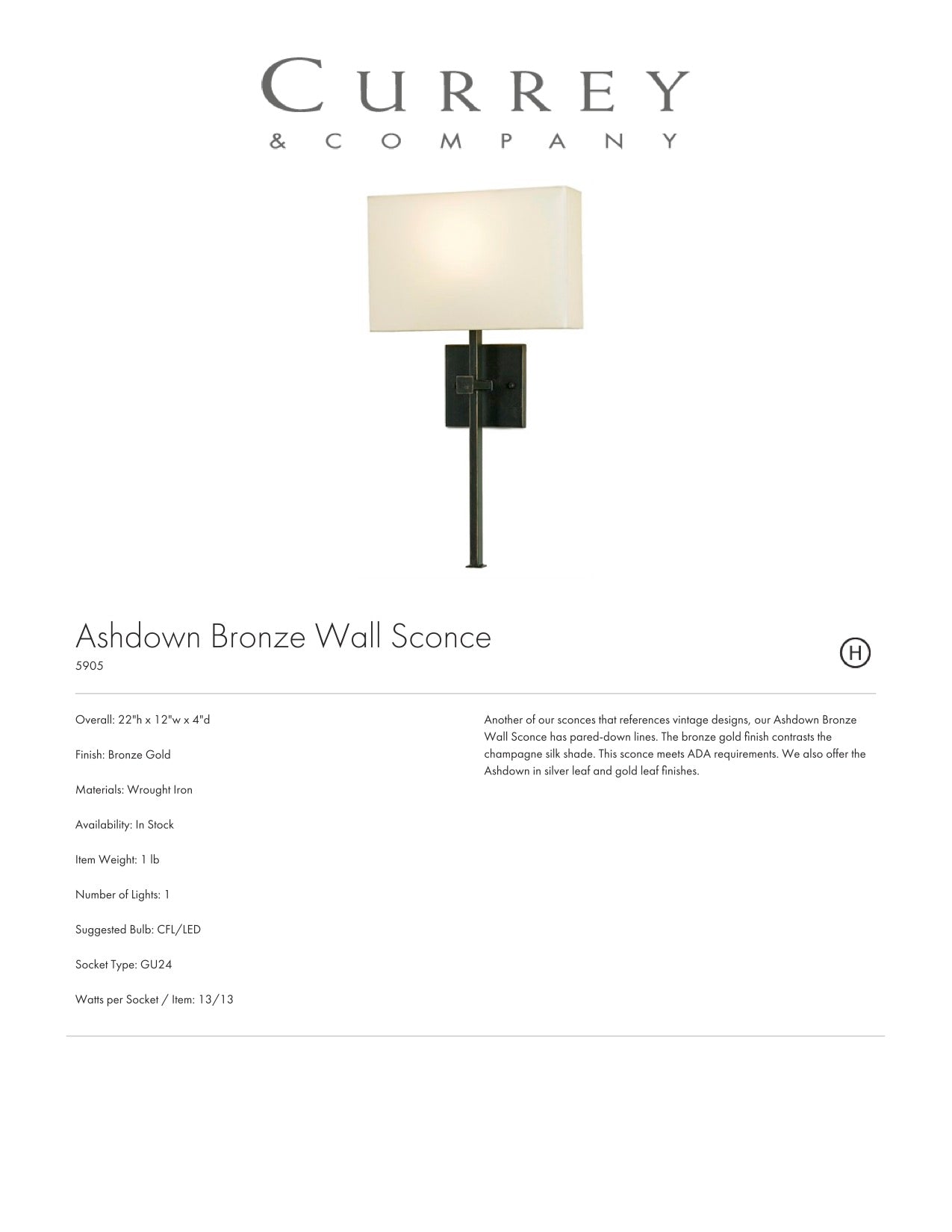 Currey and Company presents the wrought iron Ashdown Wall Sconce featuring a black gold finish. Topped with a champagne silk shade, this industrial lighting is perfect for entryways, hallways and bathrooms in homes and offices!