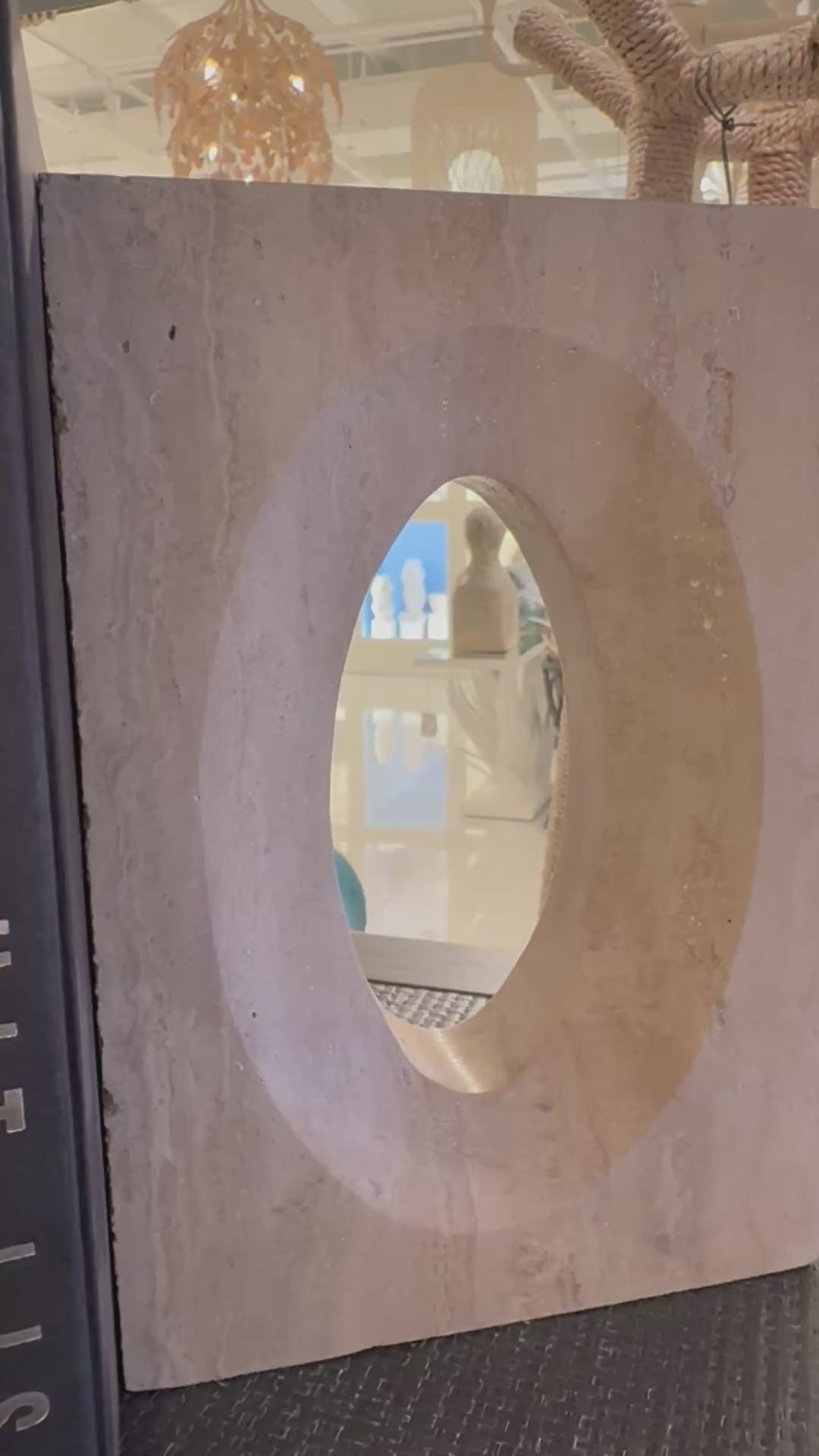 The Demi Travertine Bookend Set by Currey and Company features two beige travertine pieces with beveled ovals, serving as both elegant sculptures and functional bookends. Variation in color and activity of veining is to be expected with natural stone; each piece will be unique. Care: Clean with a soft, dry cloth and avoid harsh chemicals to protect the finish.