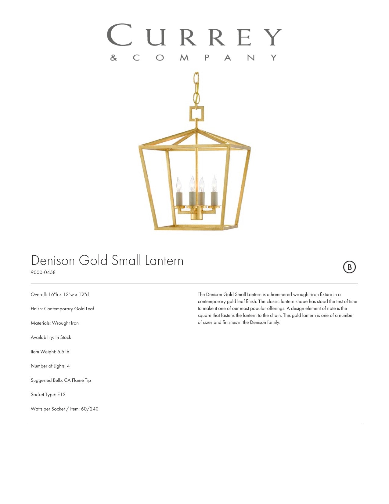Wrought Iron; Contemporary Gold Leaf Finish; 4 lights; 60 Watt bulb; Bulb Type: B Torpedo Tip, E26; Bulbs not included.