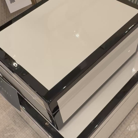 The Ivory Lacquer Box Set of 2 by Currey and Company features a stunning sheen, showcasing the timeless elegance of lacquer on sleek surfaces. Made of wood and crafted with the traditional lacquer process, these nesting boxes boast crisp white exteriors rimmed with deep black accents.