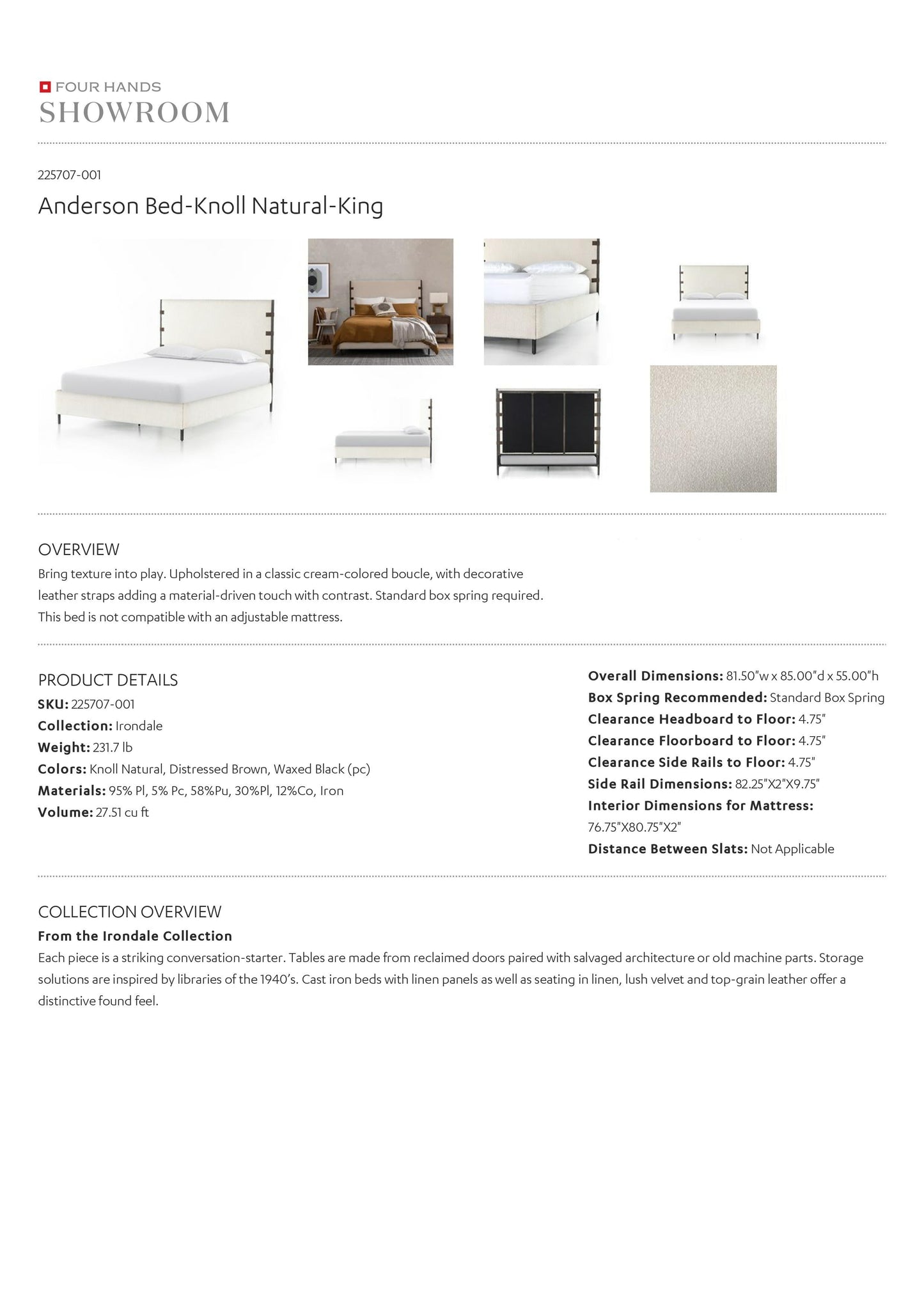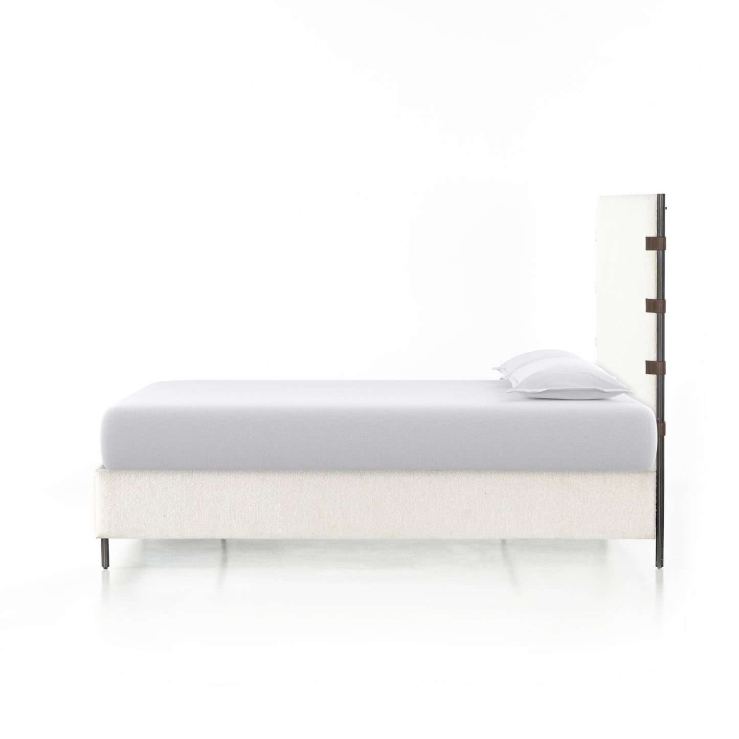 Bring texture into play. The Anderson Bed in Knoll Natural from Four Hands features upholstery in a natural boucle, with decorative leather straps adding a material-driven touch. Perfect for master suites and guest rooms alike, the Anderson delivers instant style to your home. *Standard box spring required. *Available in King and Queen sizes.