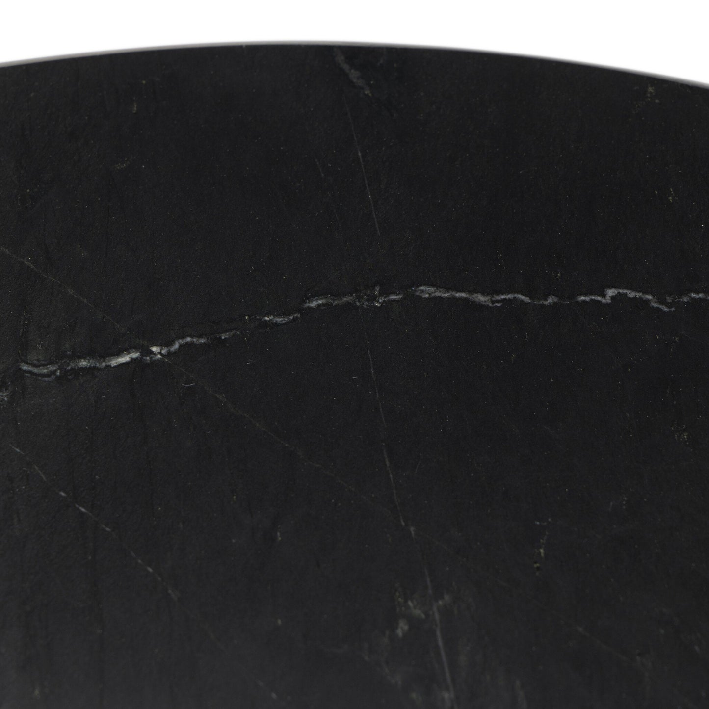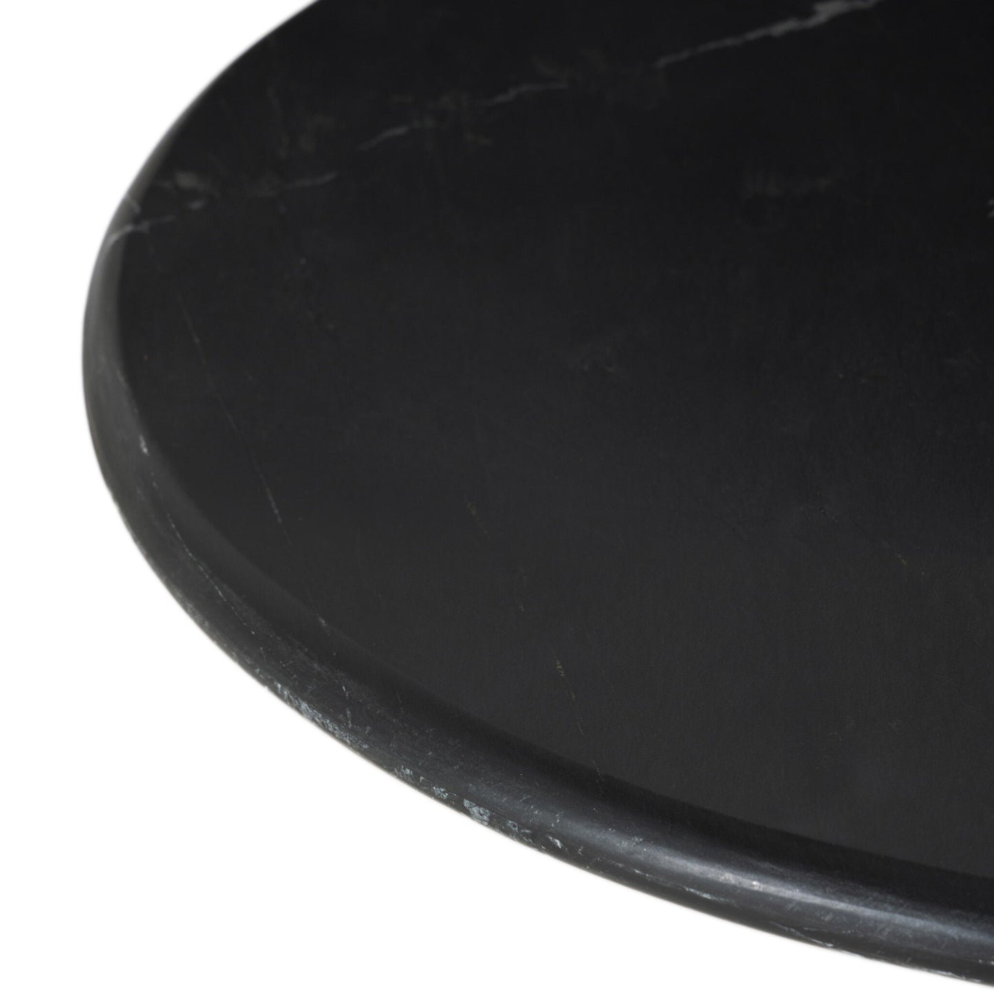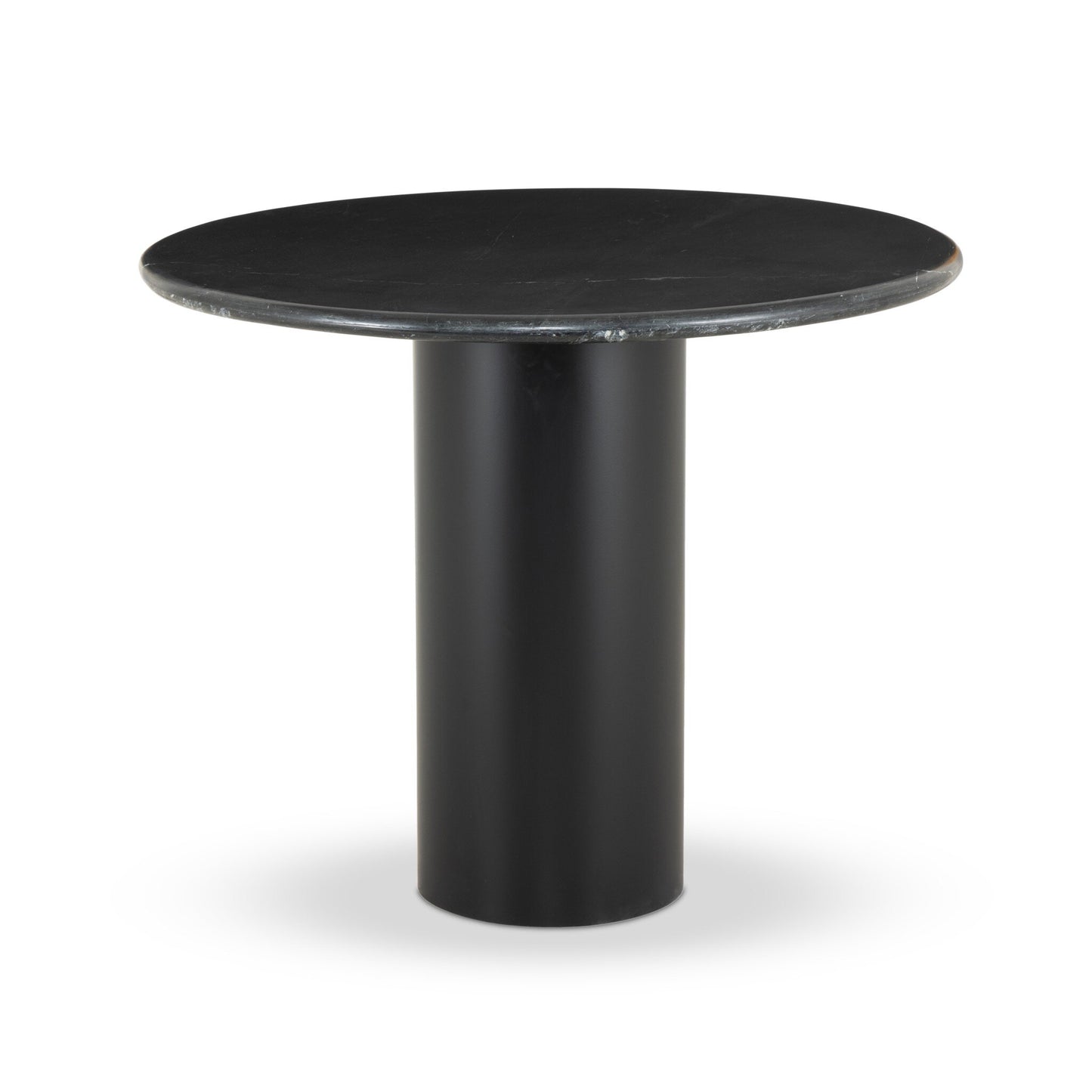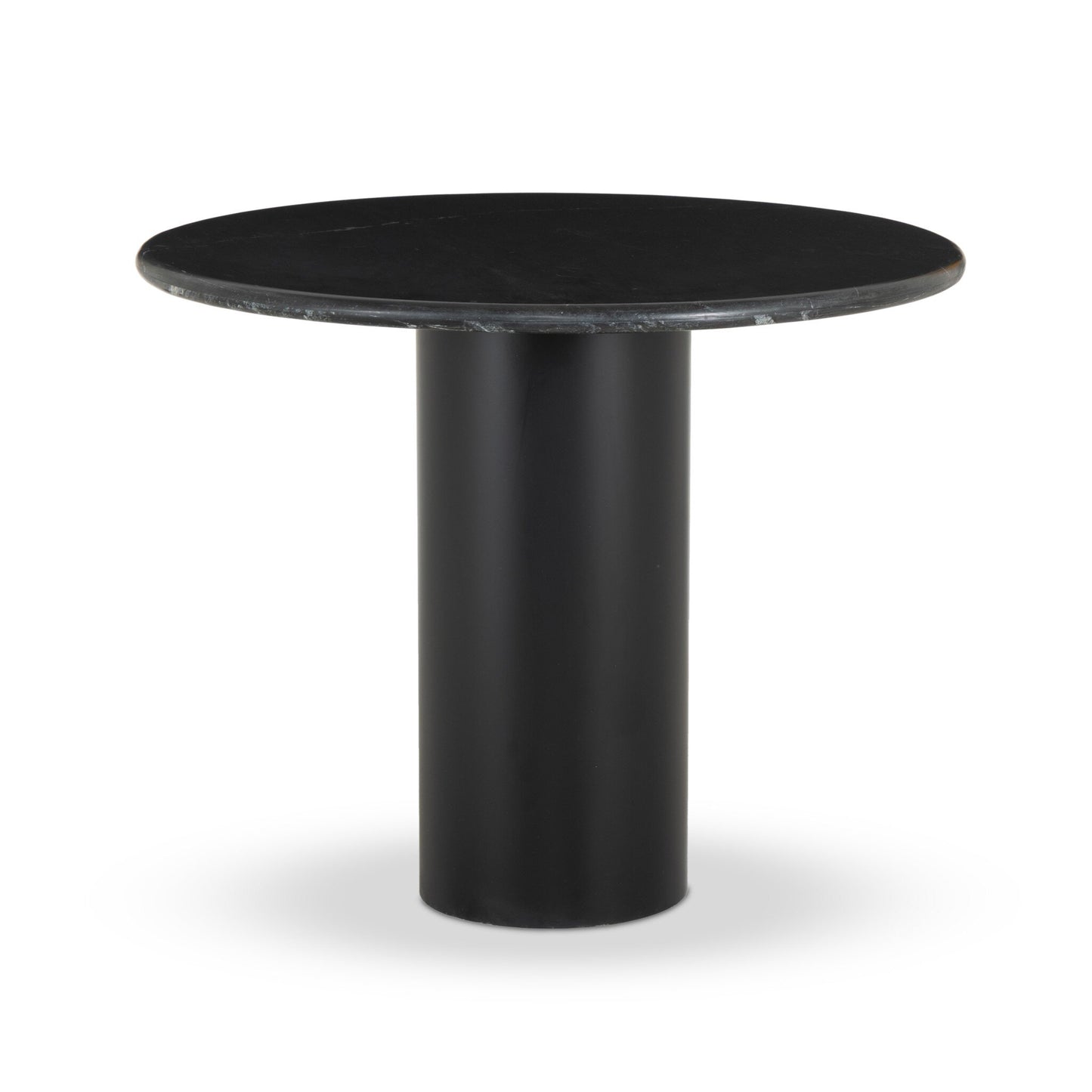 Simply sophisticated, the Belle Round Dining Table in Black Marble from Four Hands is a bistro-style table inspired by 1970s Italian design, a dark kettle black finished iron base supports a rounded tabletop of black solid marble, for a fresh, monochromatic look that pairs with just about anything.