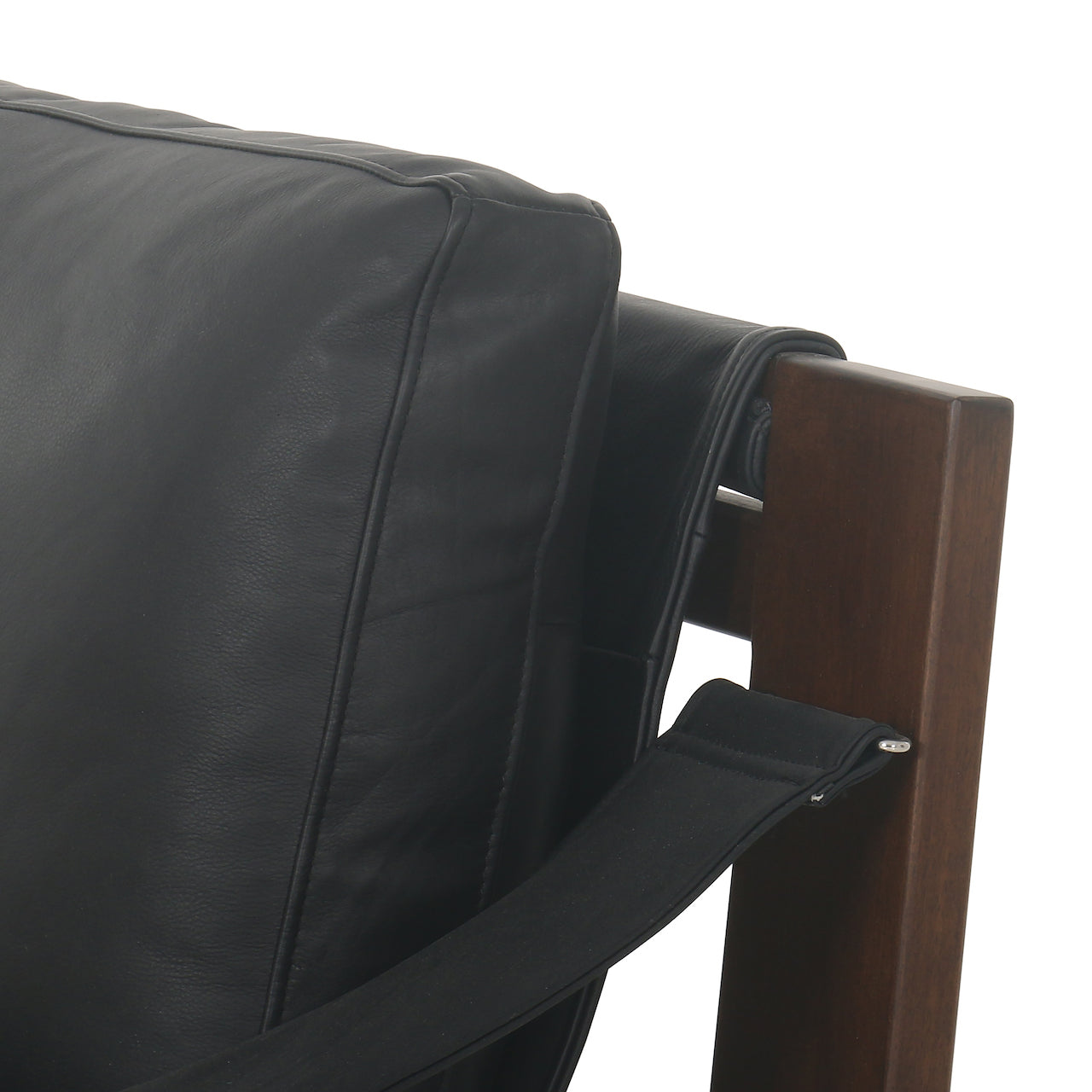 The Cesar Chair in Carson Black Leather from Four Hands is a classic sling chair that gets a grand, elevated look. The solid wood frame of the Cesar Chair is shaped, curved and smoothed on all edges. Cushioned seat and back are upholstered in heirloom leather.