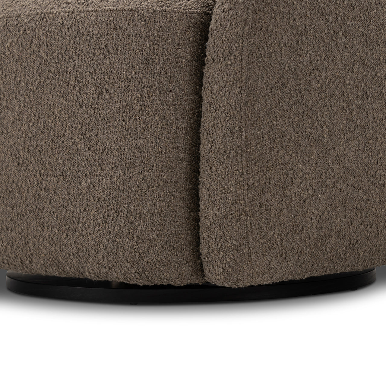 The Levi Swivel Chair in Knoll Clay from Four Hands features fine curves that meet tailored upholstery, atop a 360-degree swivel. Performance fabrics are specially created to withstand spills, stains, high traffic and wear, ensuring long-term comfort and unmatched durability.