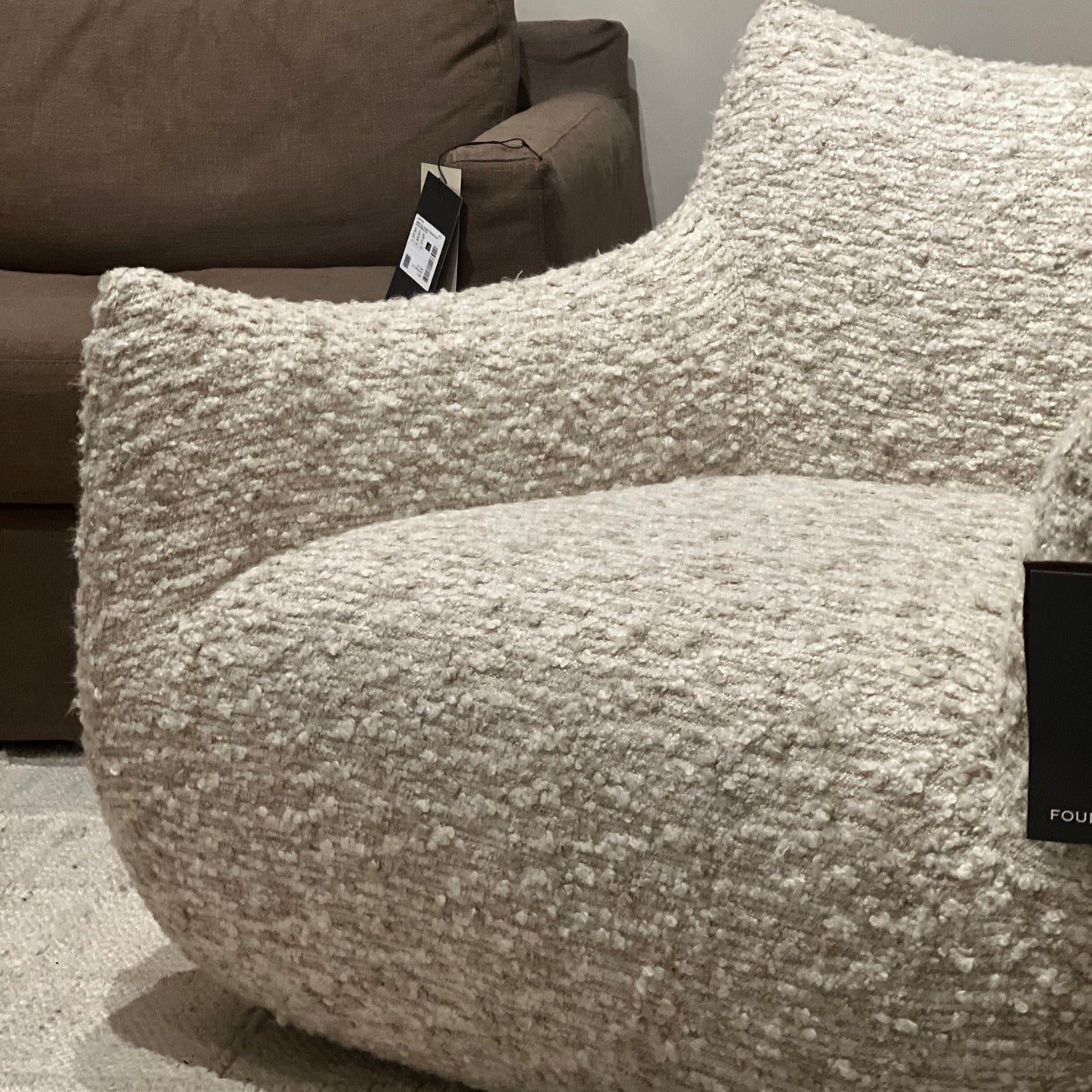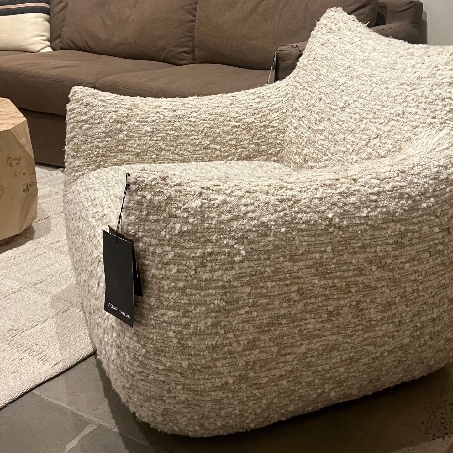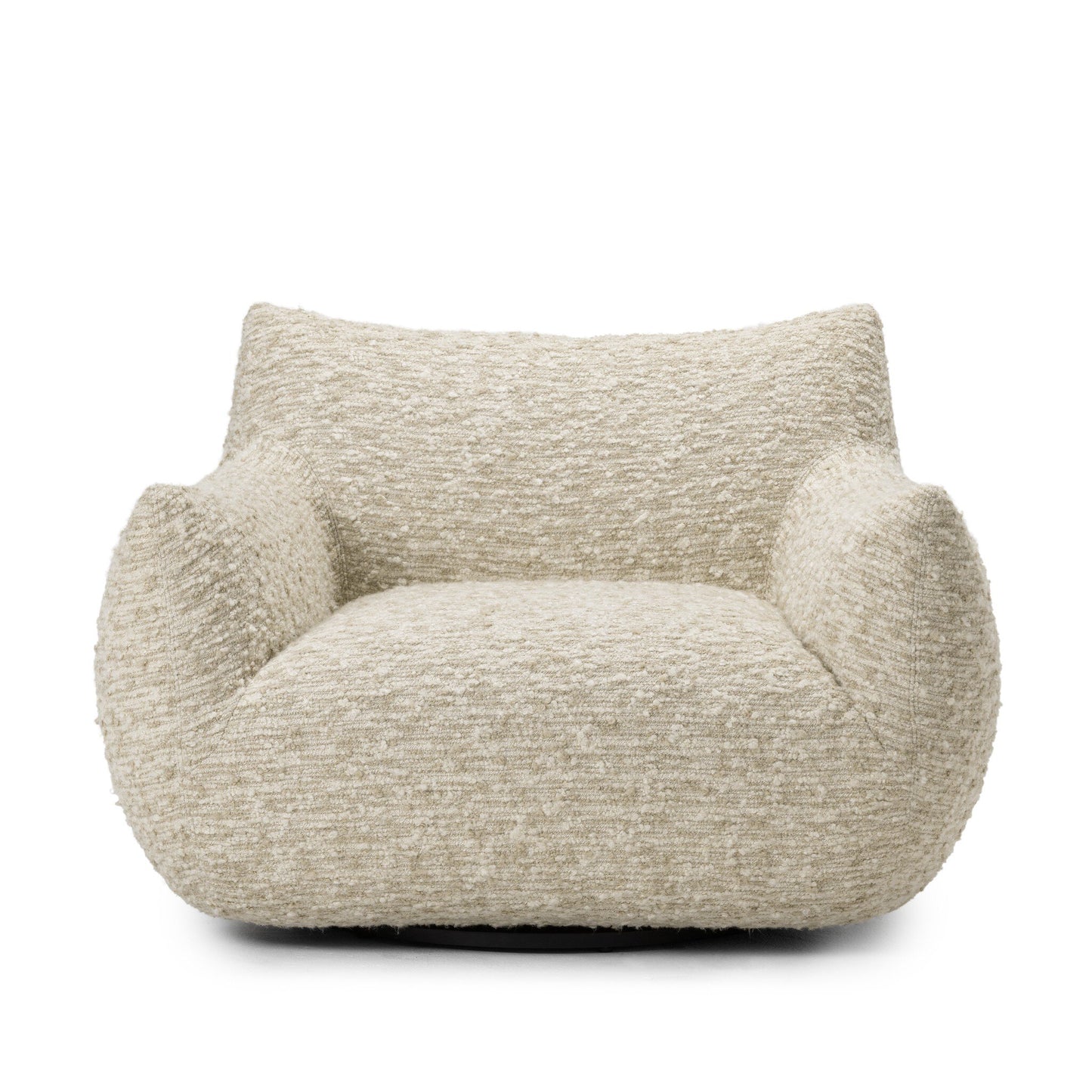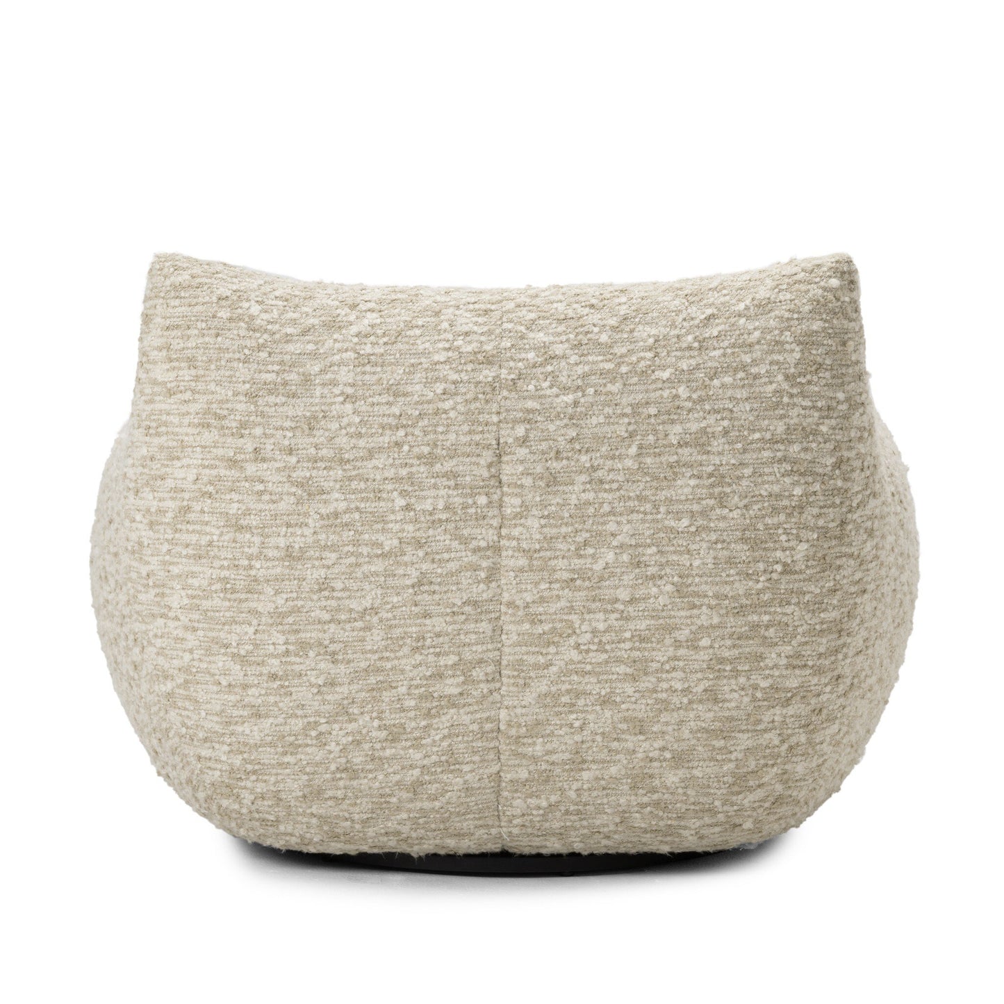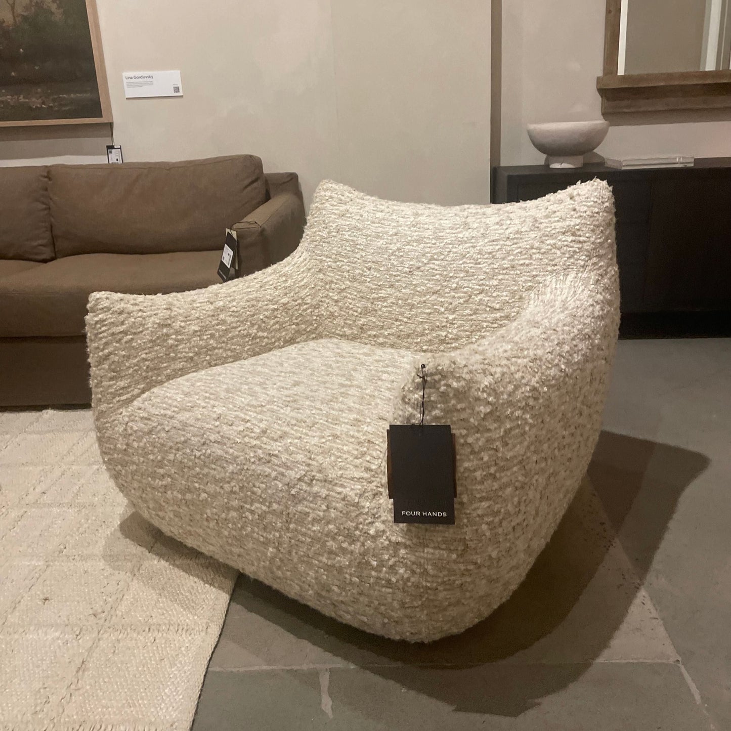 The Four Hands Margot Swivel Chair in Solema Cream boasts a contemporary twist on a retro design. With S-spring suspension in the seat, this chair offers optimal comfort and durability. Its 360-degree swivel function adds versatility. The exaggerated boucle fabric adds an extra layer of depth and texture to the overall look.