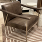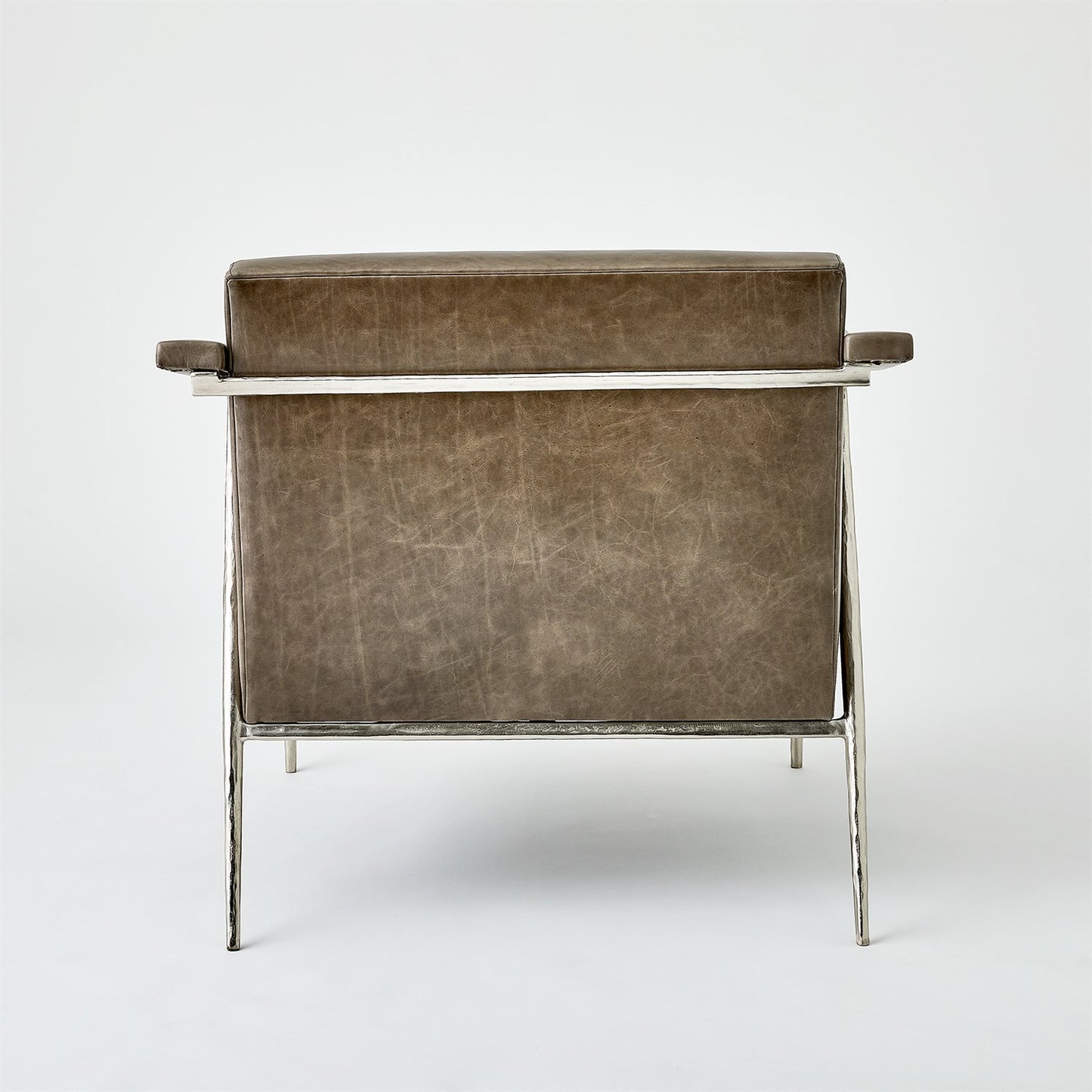 The L Brooks Leather Chair in Nickel by Global Views, inspired by the 1920s Hollywood lounge chair era, is a stunning tribute to timeless elegance. Made from iron with a sleek nickel finish, it features mango wood and luxurious grey leather, evoking the iconic silent movie star Louise Brooks.