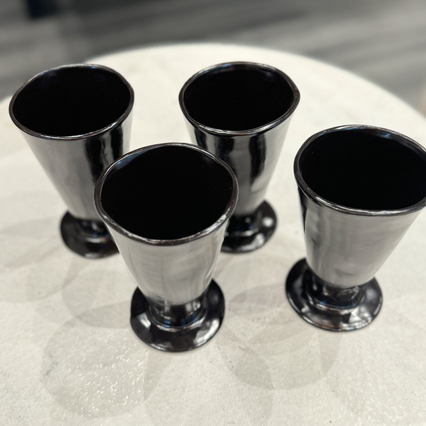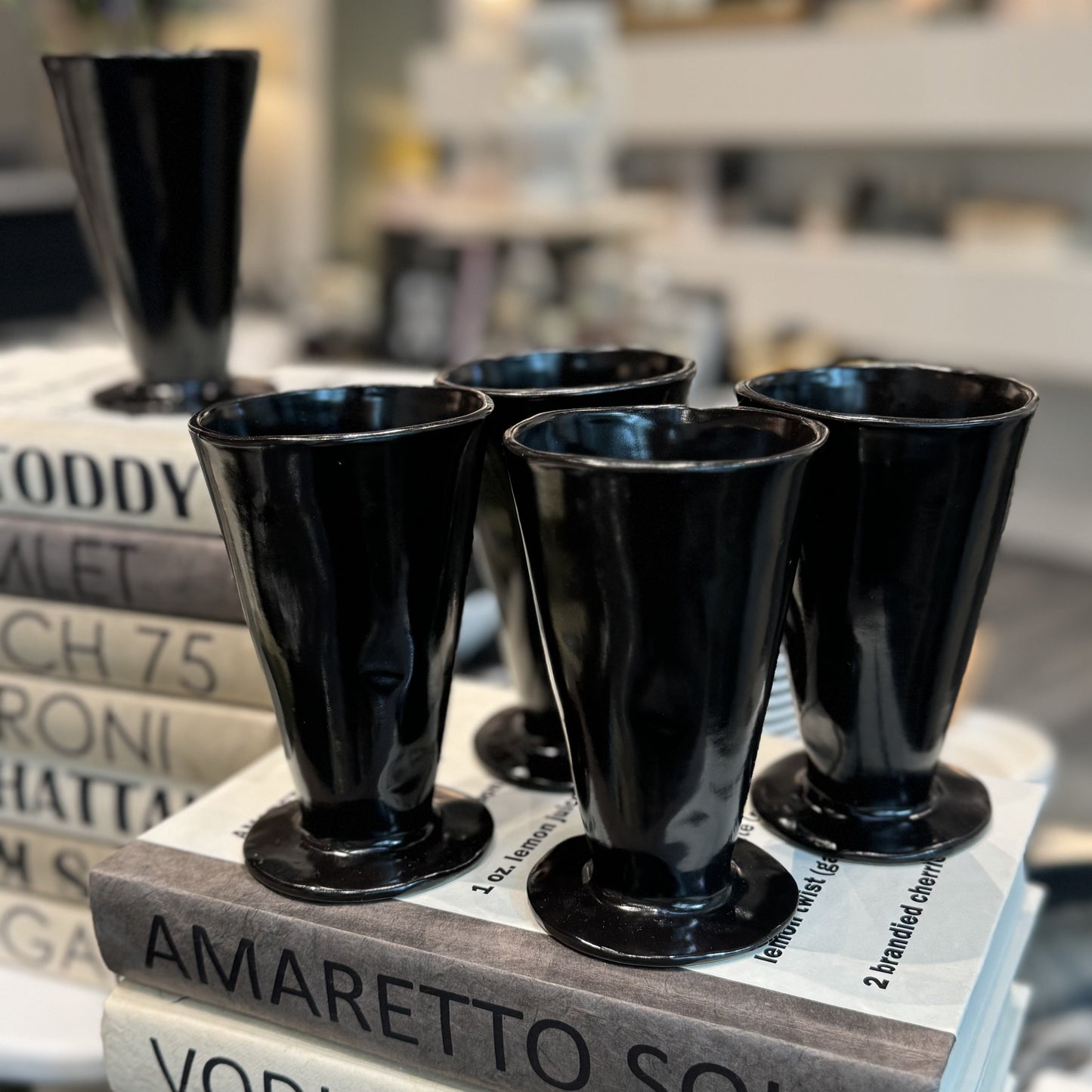 Serax’s Goblet in Ebony Set of 8 by designer Marie Michielssen in the La Mère collection connects the past and present with its unique shape. While this dark brown, almost black tableware may look slightly nostalgic, it is also very innovative.