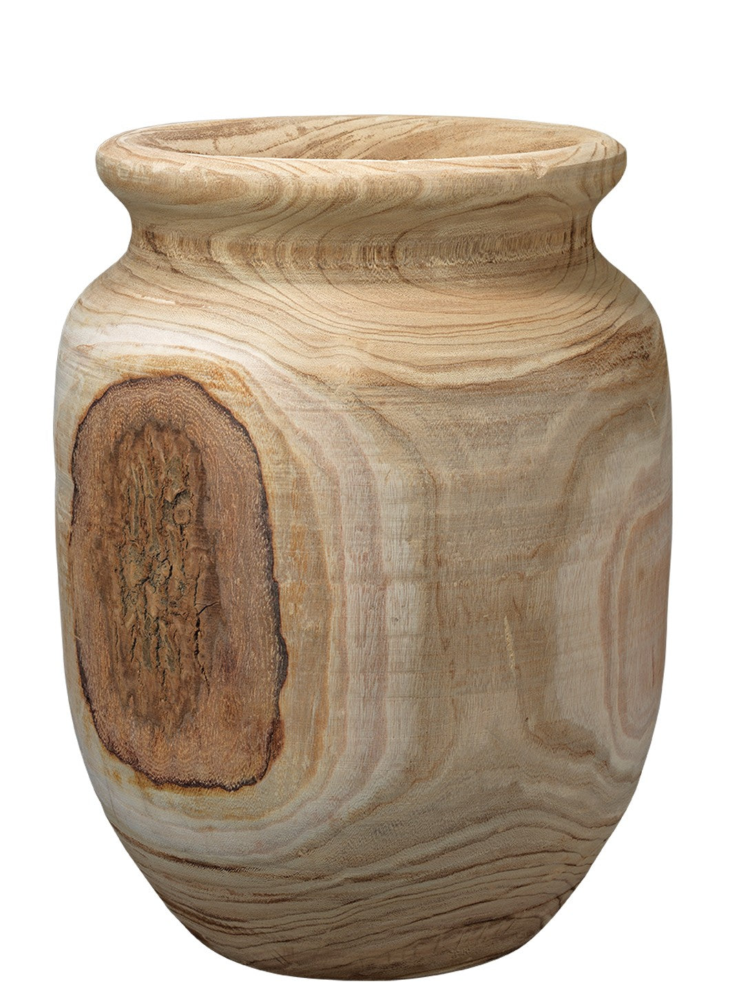 The Topanga Wooden Vase by Jamie Young is a versatile addition to any indoor or outdoor space. Carefully crafted from natural wood, this sculptural piece adds a touch of beauty to front porches, patios, or pool decks.