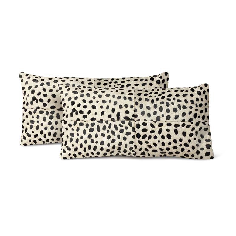 The Abram Pillow Set of 2 from Made Goods showcases four panels of Dalmatian print, made from patchwork hide spots. Add a playful, eye-catching element to your furniture with this touchable accessory, available in lumbar and two square sizes. Perfect for any room in your home.