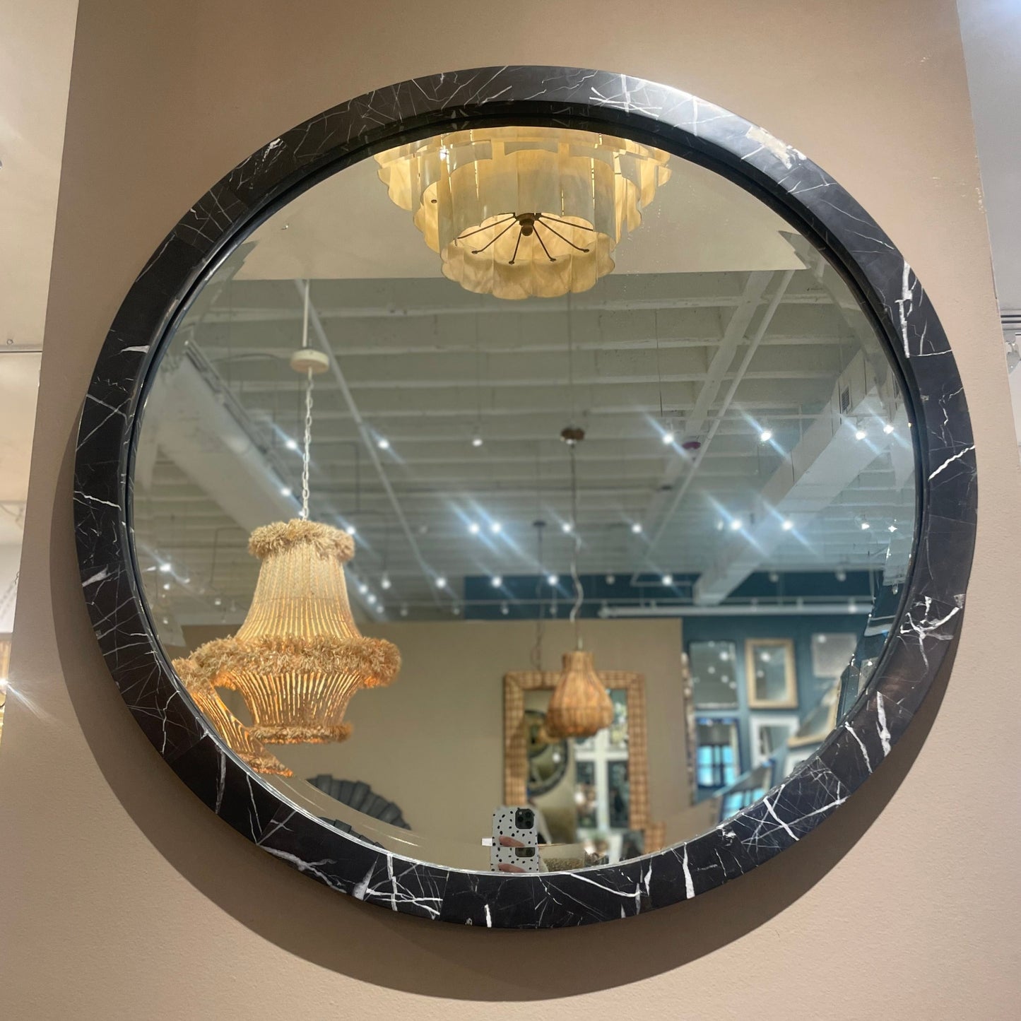 Discover the enduring sophistication of the Albert Mirror in Nero Marble from Made Goods. Its polished nero marble frame and beveled edge elevate the aesthetic of any room.