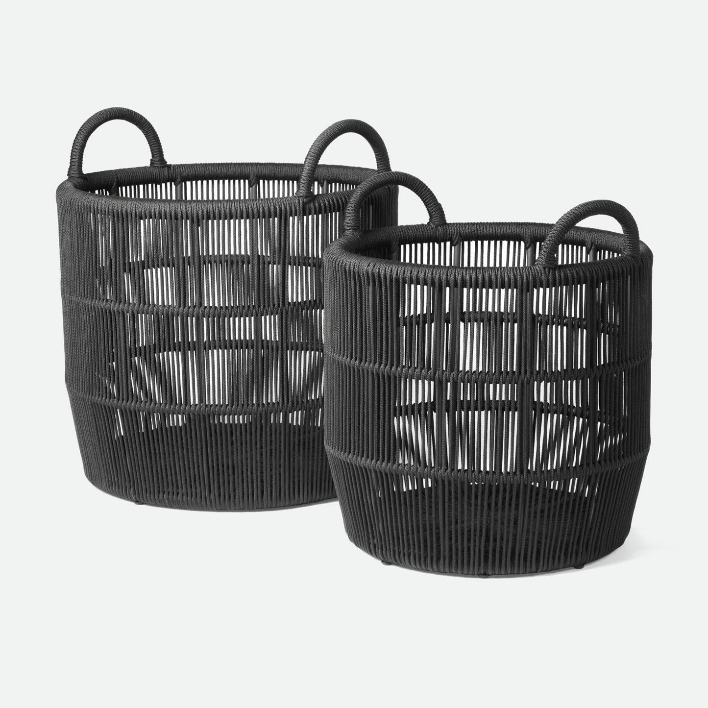 Made Goods' Alcoy Basket Set in Slate Performance Rope offers both contemporary storage and outdoor durability. *Sold as a set of 2.