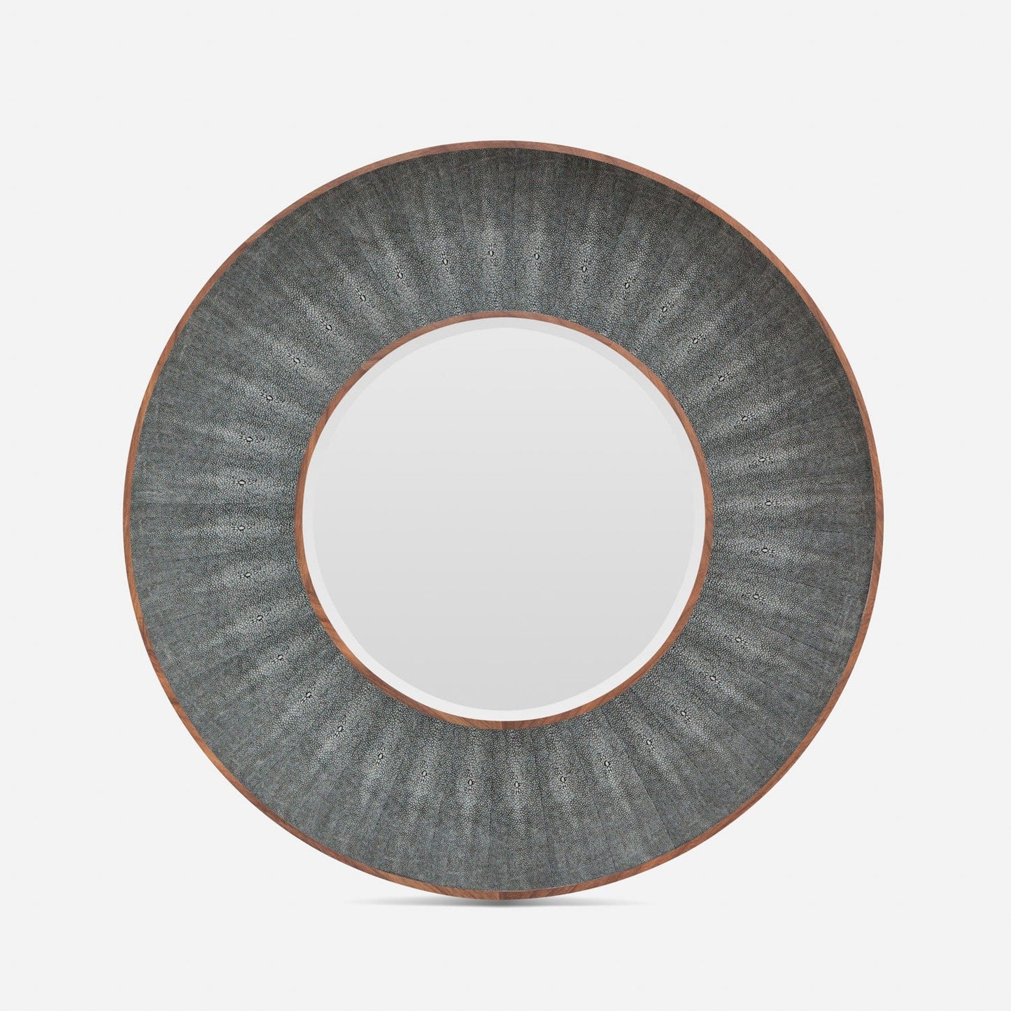 Cool Gray Faux Shagreen; Walnut Veneer; Beveled Mirror
