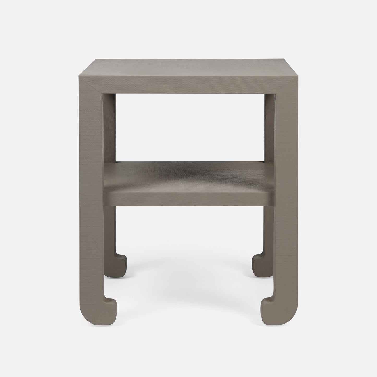 The Askel Side Table in Seal Faux Raffia boasts a beautiful, textured surface and elegant Chinese furniture-inspired design, making it the perfect addition to elevate any room with a touch of luxury.