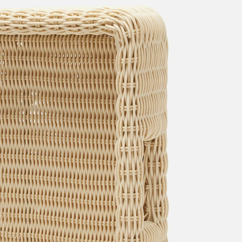 The Avani Extra Large Square Tray Set in Off White Wicker from Made Goods takes the timeless basketweave serving tray and makes it even more adaptable to contemporary hospitality. Handmade in all-weather faux wicker, nestable sizes, and perfectly neutral finishes.