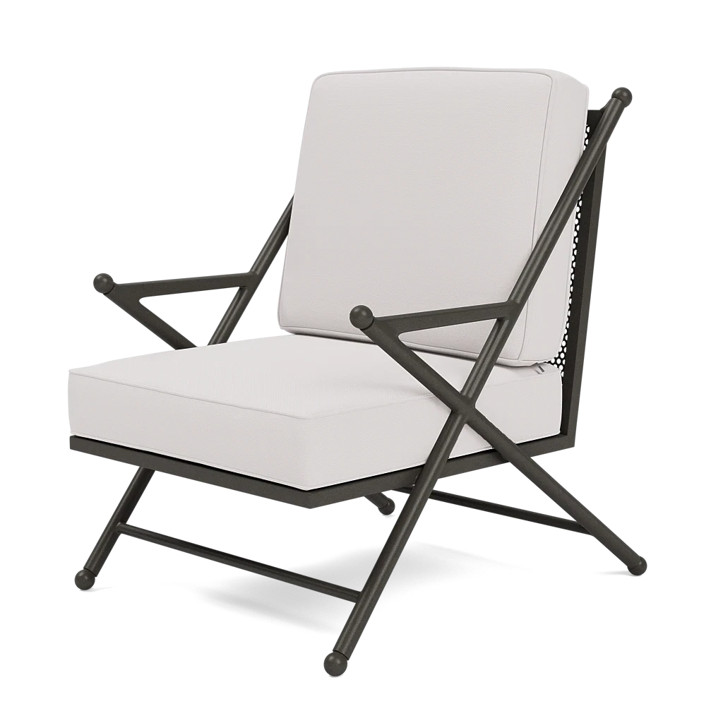 Made Goods showcases the Balta Lounge Chair. Classic and clean, this oversized campaign-style chair comes upholstered in Alsek White upholstery complemented by an ash gray metal frame. Suitable for outdoor spaces, the Balta delivers designer style to your home. Pair with the Balta Lounge Sofa for the ultimate designer look.
