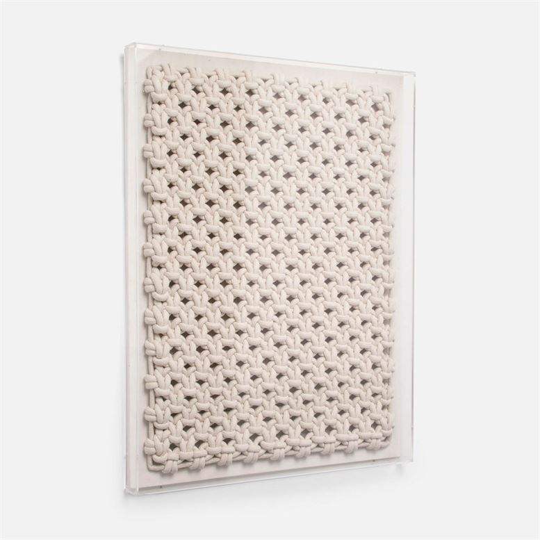 The Bello Wall Art Large by Made Goods is handcrafted using woven rope sculpture, making it a dynamic addition to any home. Encased in an acrylic frame, this piece adds subtle visual texture to your space.
