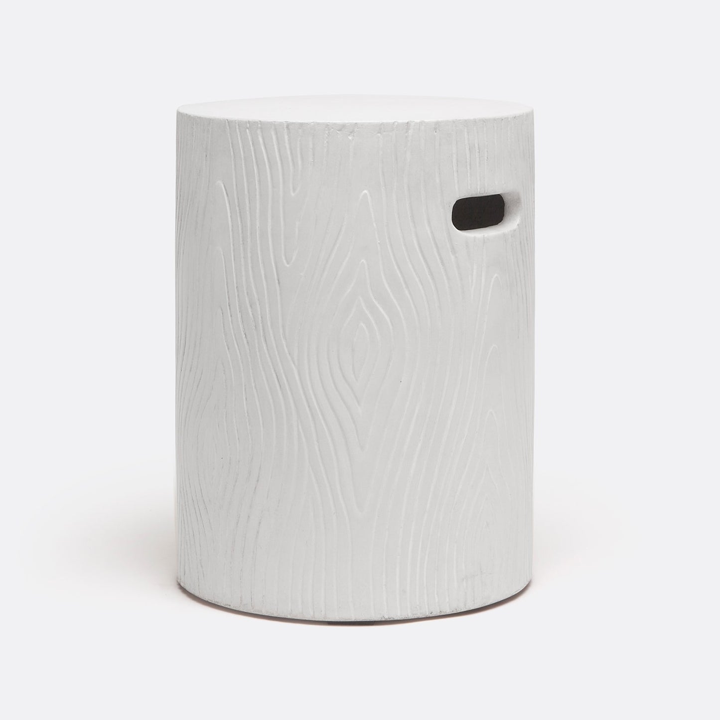 The Bernt Stool in Ivory Concrete, presented by Made Goods, provides additional seating for both indoor and outdoor areas. This chic stool has a rustic appearance, a faux bois concrete finish, and convenient handles.