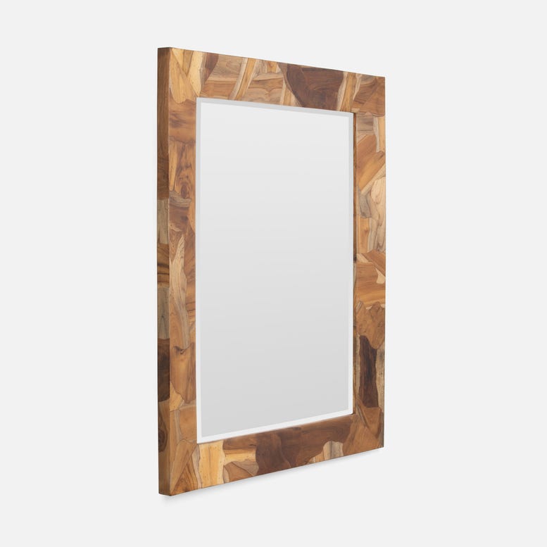 Add sophistication to any area with the Chandler Mirror in Natural Gloss Teak from Made Goods. Its teak border, with a gloss finish that emphasizes the natural wood grain variations, frames the rectangular mirror.