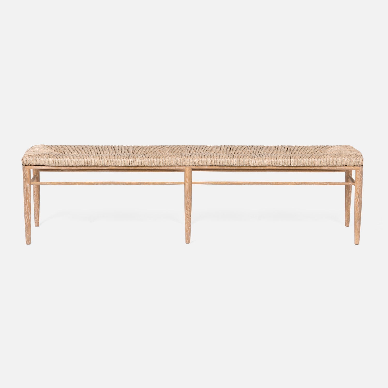 The Colwyn Bench in Cerused White Oak from Made Goods is a modern and classic piece. The frame is made of durable cerused white oak veneer, while the seat is woven with twisted natural rush fiber. This versatile bench is a great addition to any room.