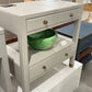 Light Gray Full Grain Leather; Two Drawers; Brass Hardware