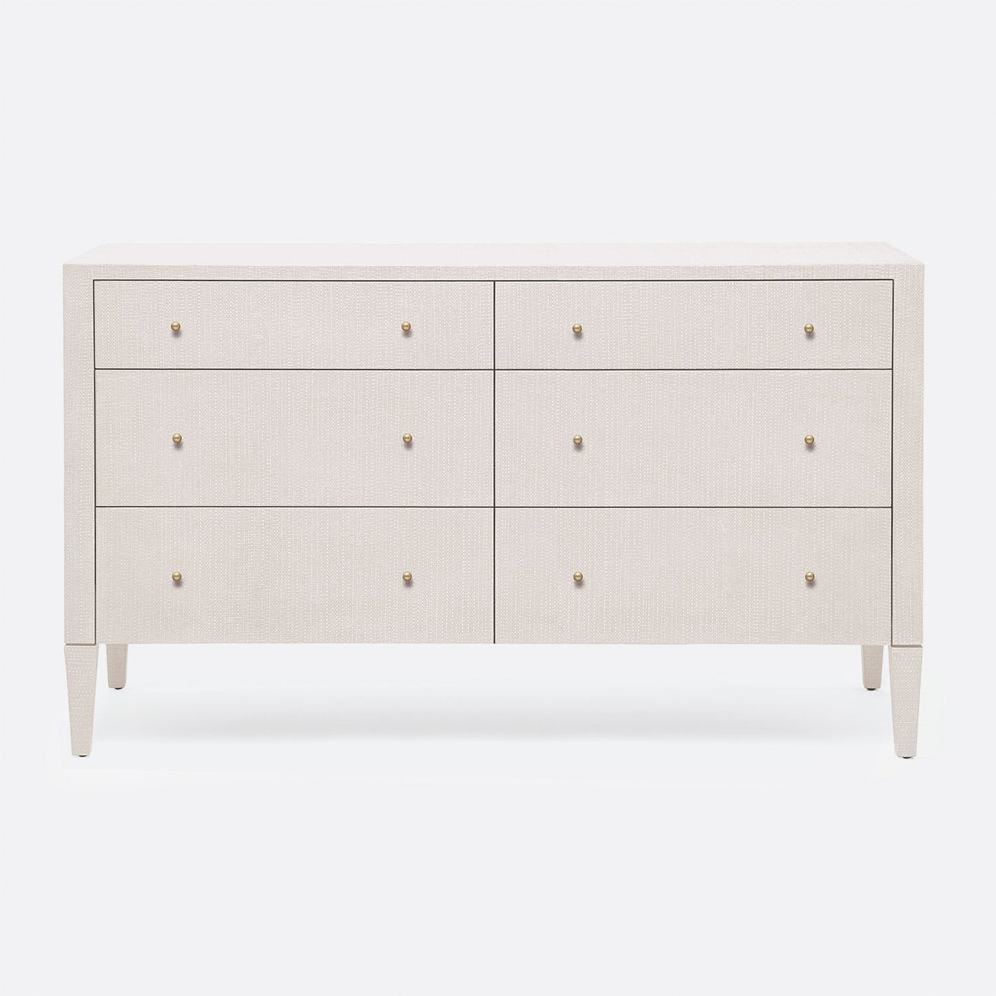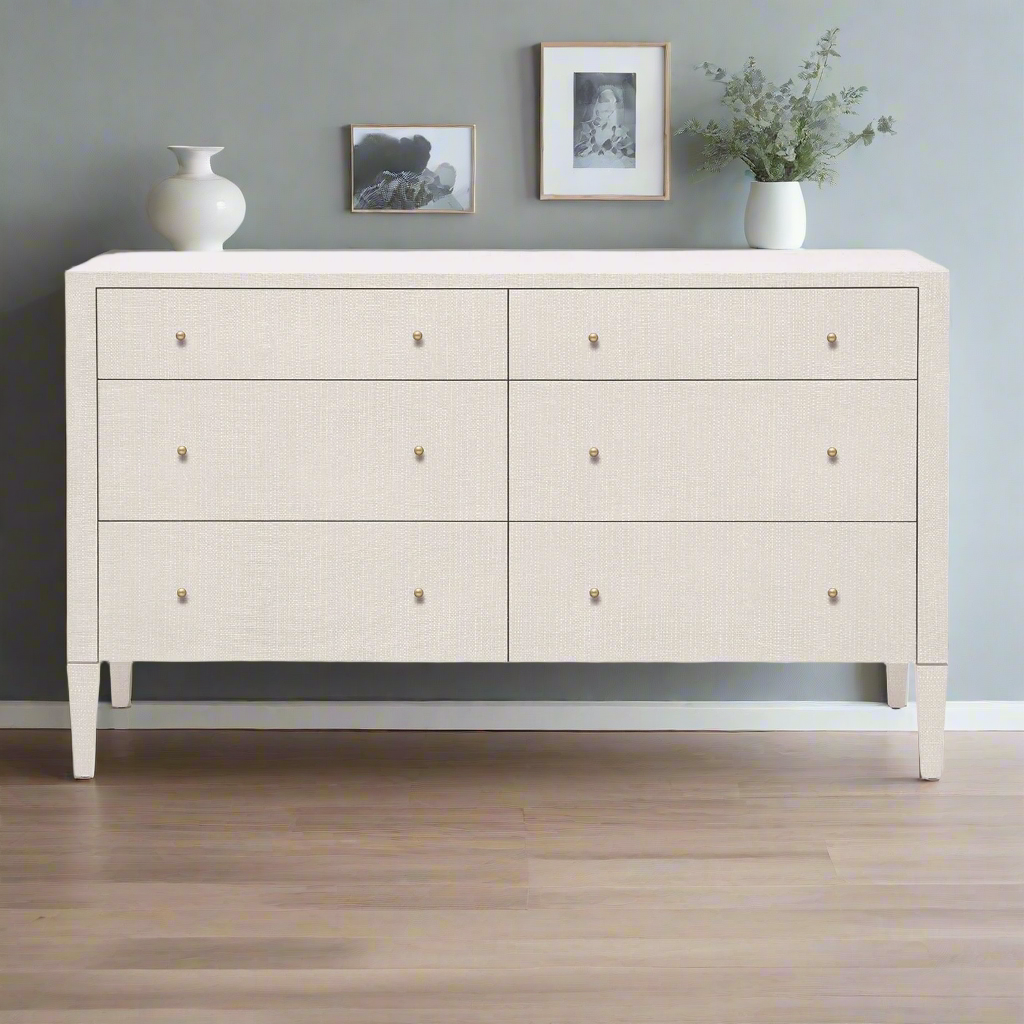 French Gray; Faux Raffia Finish; 6 Drawers; Brass Drawer Pulls