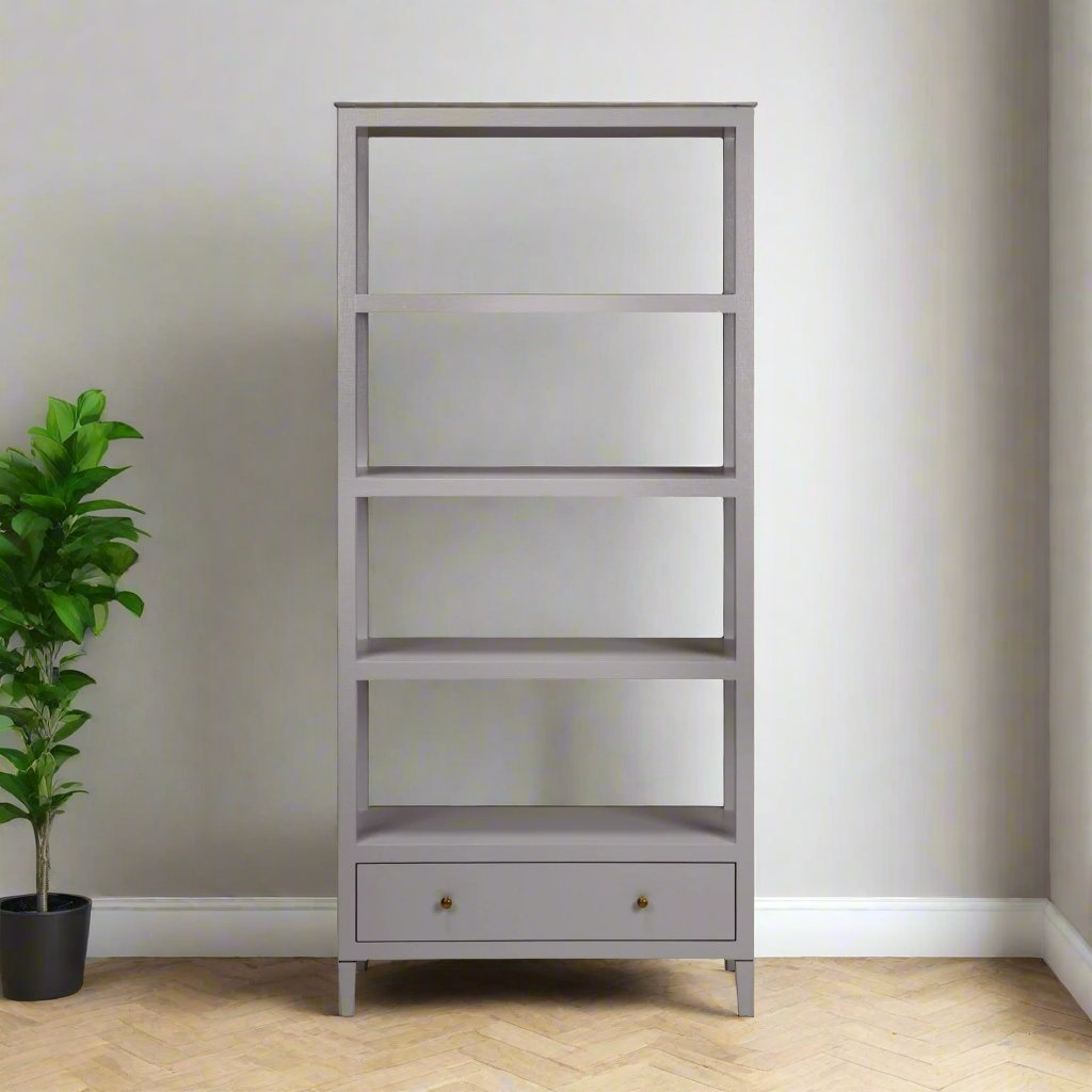 The Conrad Bookcase in Seal Faux Raffia from Made Goods features expertly crafted cabinetry and meticulous attention to detail. With proportions that are both modern and refined, each Conrad Bookcase lends quiet grandeur to any space.