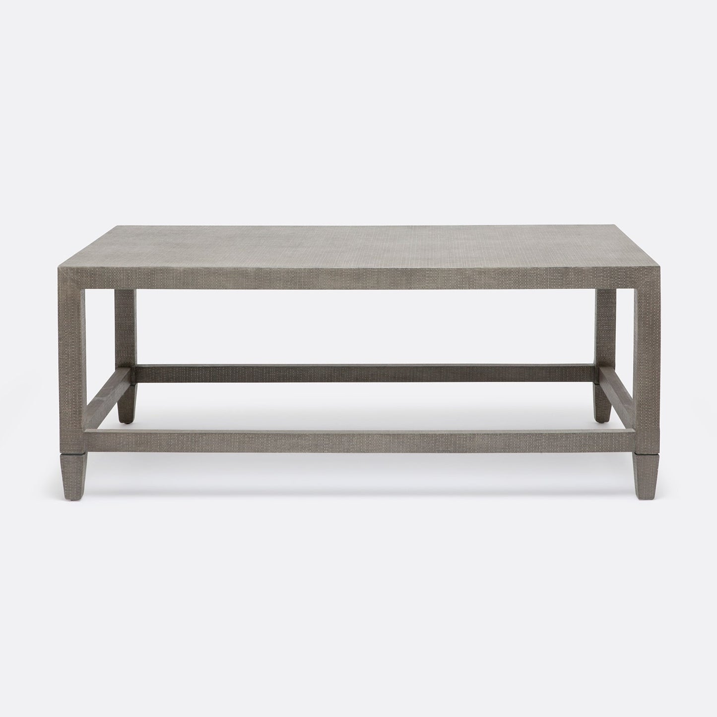 Made Goods Conrad Coffee Table in Seal showcases the shiny, reflective finish of faux raffia. This modern coffee table, designed as a rectangle, provides a surface for you to display decorative items. Contemporary coffee tables like this living room coffee table give you function with a touch of glam. Consider using the Conrad in the sitting area of your office as well.