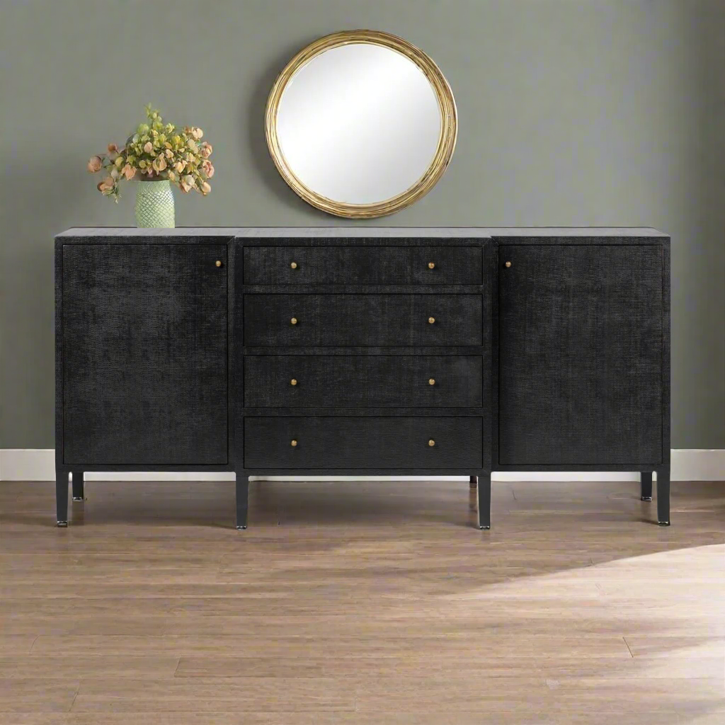 Conrad Deep Drawer Buffet Black Faux Raffia - multiple options