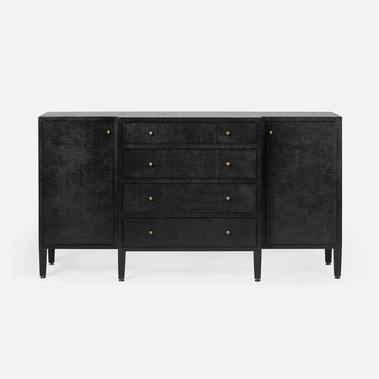 Featuring sleek and stylish black faux raffia, the Conrad Deep Drawer Buffet from Made Goods adds both form and function to your home. With its spacious drawers and elegant design, it's a sophisticated storage solution for any room.