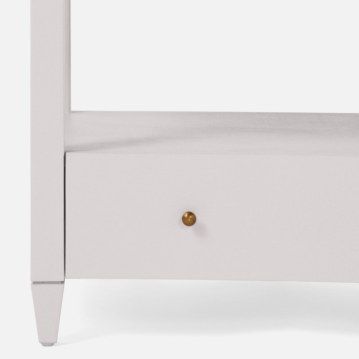Made Goods Conrad Double Nightstand in French Gray showcases a faux raffia texture with a shiny hint of pure luxe. Shaped as a rectangle, this modern bedside table provides you with 2 self-closing drawers for storage of small electronics and with a shelf for your books or decorative pieces.