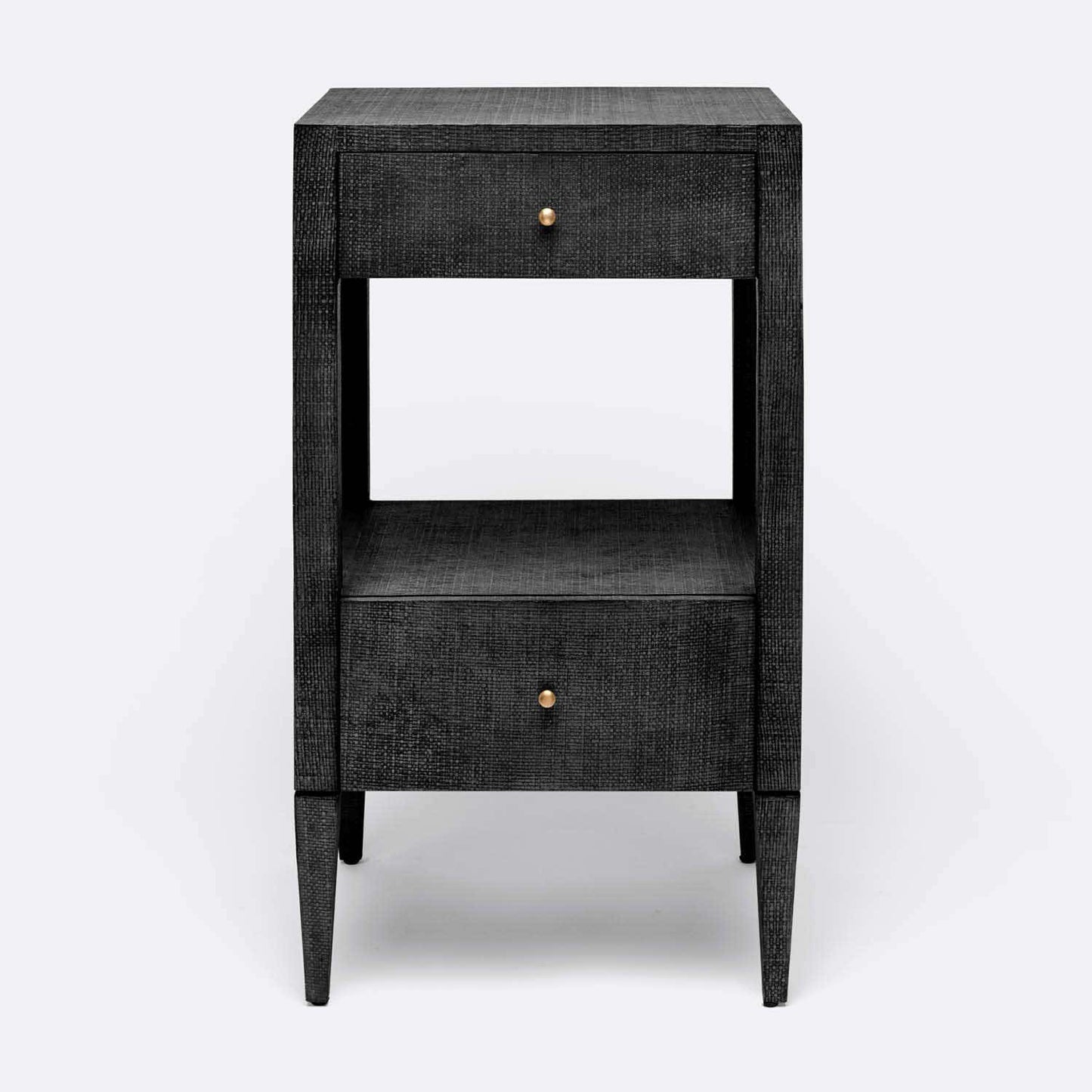 Made Goods presents the Conrad Single Nightstand in Black Faux Raffia with texture and a slight sheen that adds a hint of glamour to this beautiful bedside table. Stylish versatility gives you the opportunity to use the square shaped Conrad as a living room side table or in your home office.