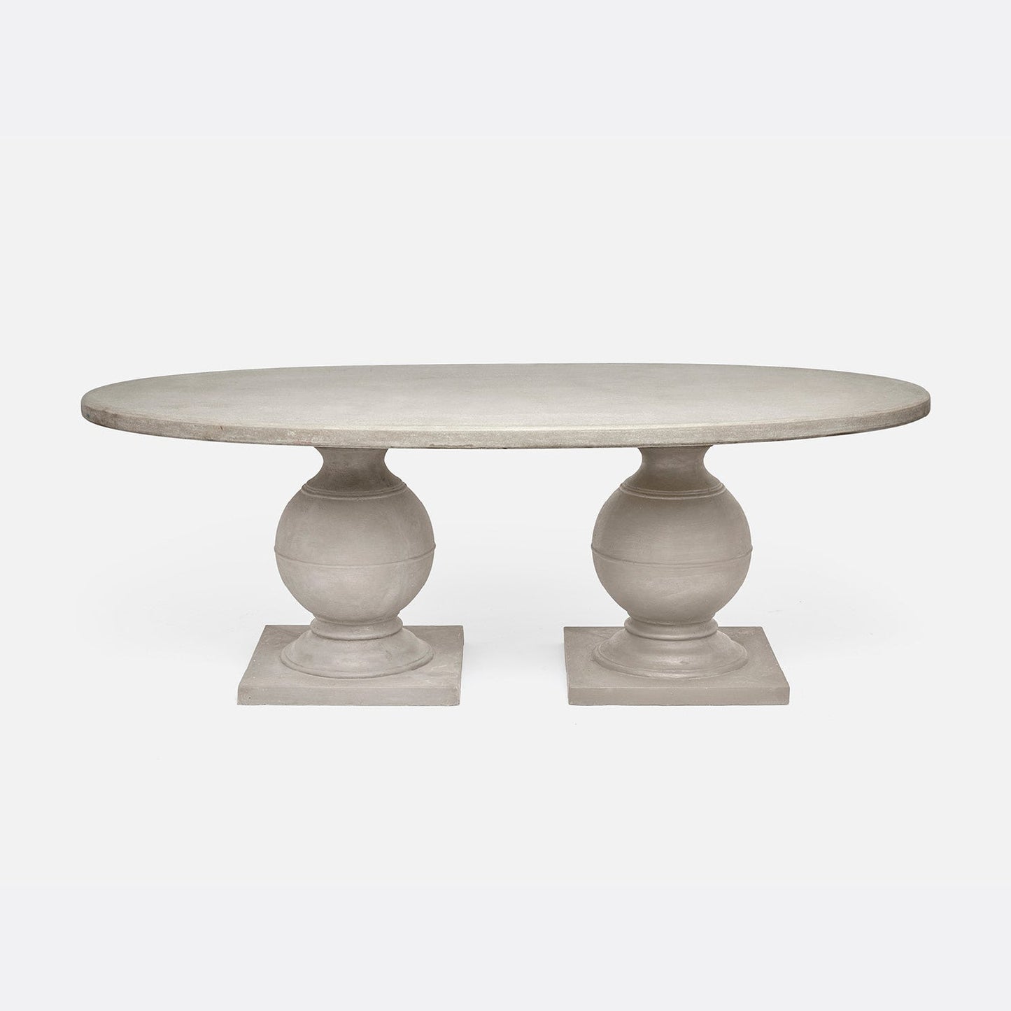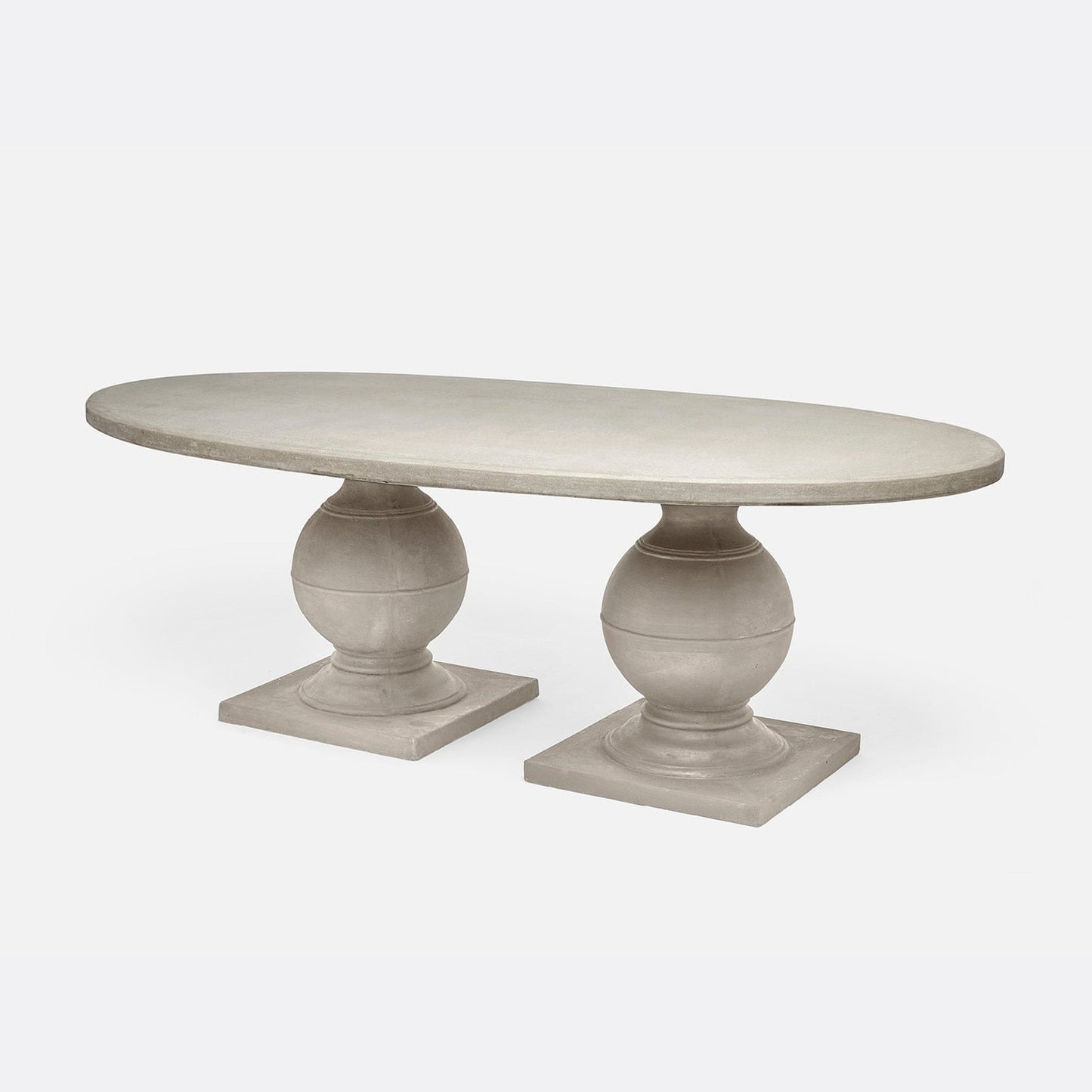The Cyril Oval Dining Table in Light Gray Reconstituted Stone from Made Goods makes the ideal centerpiece for outdoor gatherings. Its pedestal stand gives it such an airy feel, you might want another one for inside as well. Concrete material naturally distresses. Minor cracks and imperfections are to be expected.