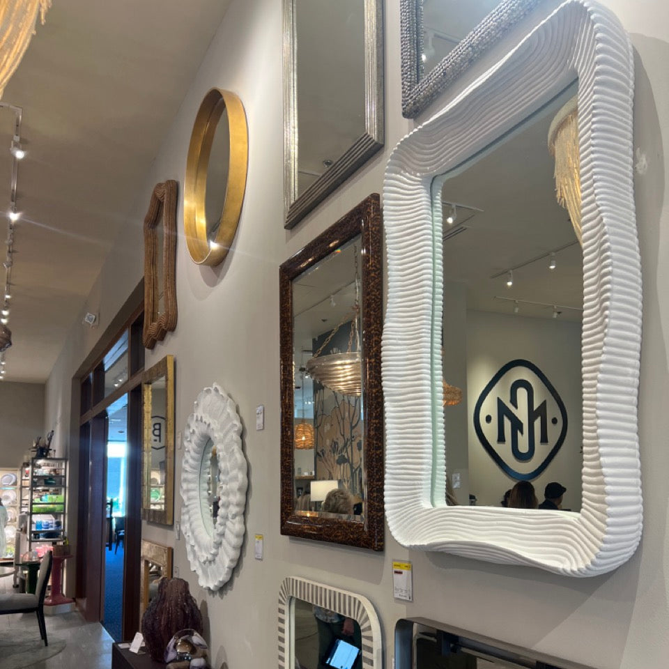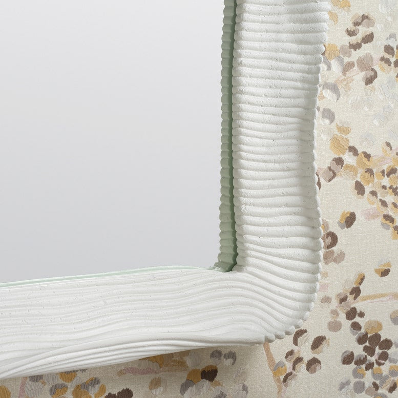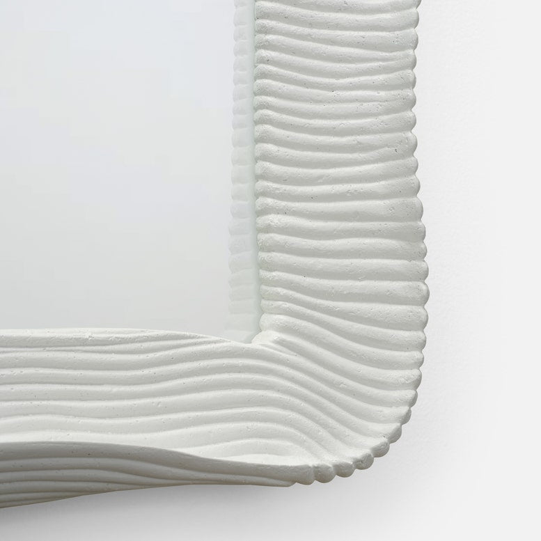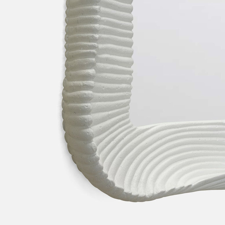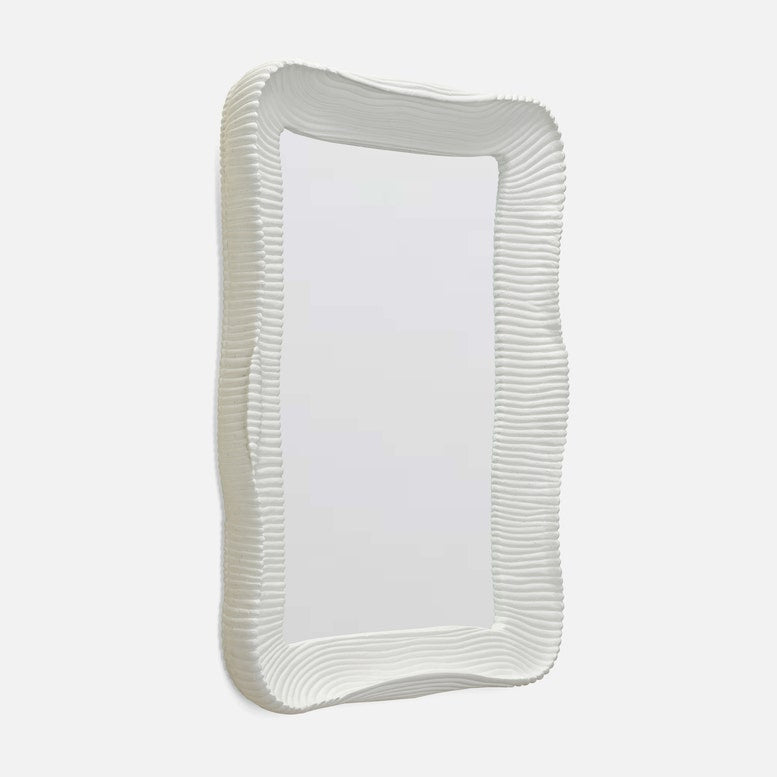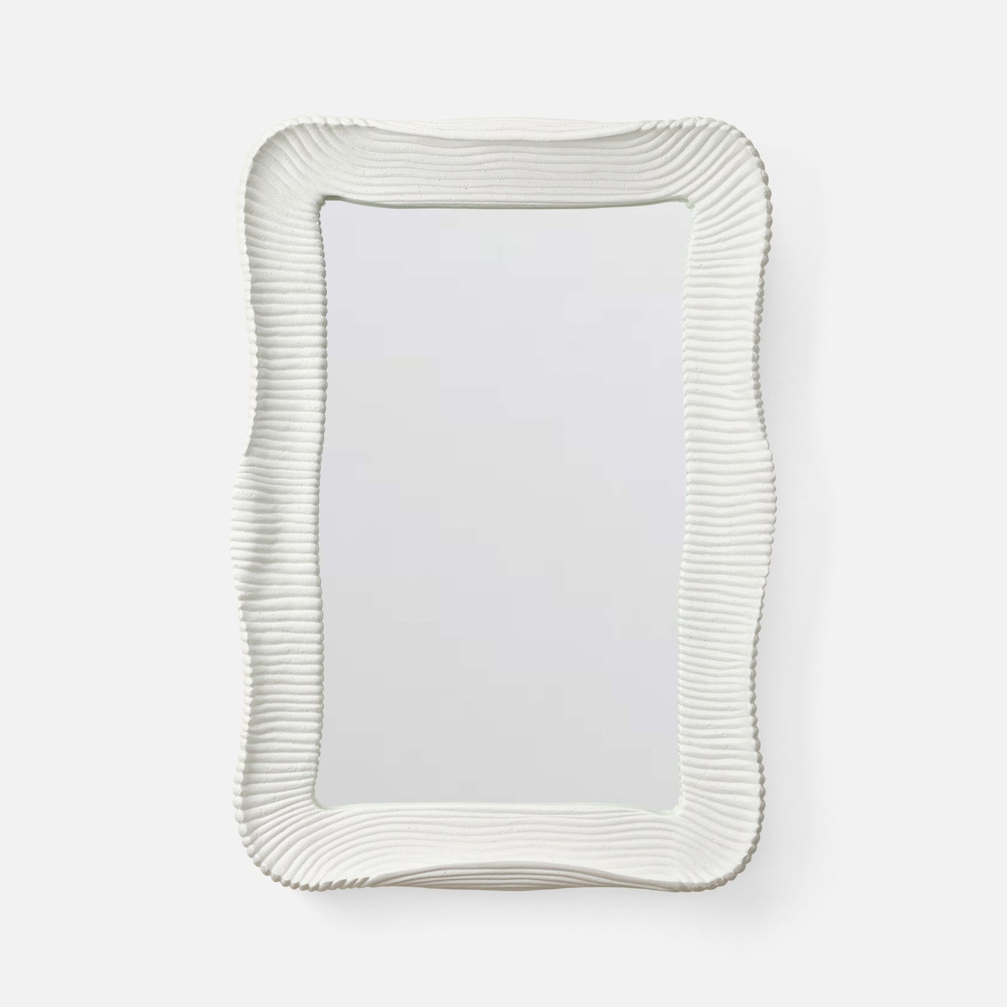 The Dalio Mirror in White Resin by Made Goods adds a distinctive charm to any area with its intricately textured finish. Using a molding process, resin is poured to create a beautifully ribbed appearance.