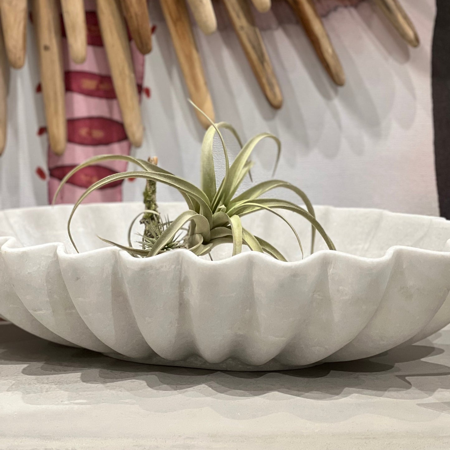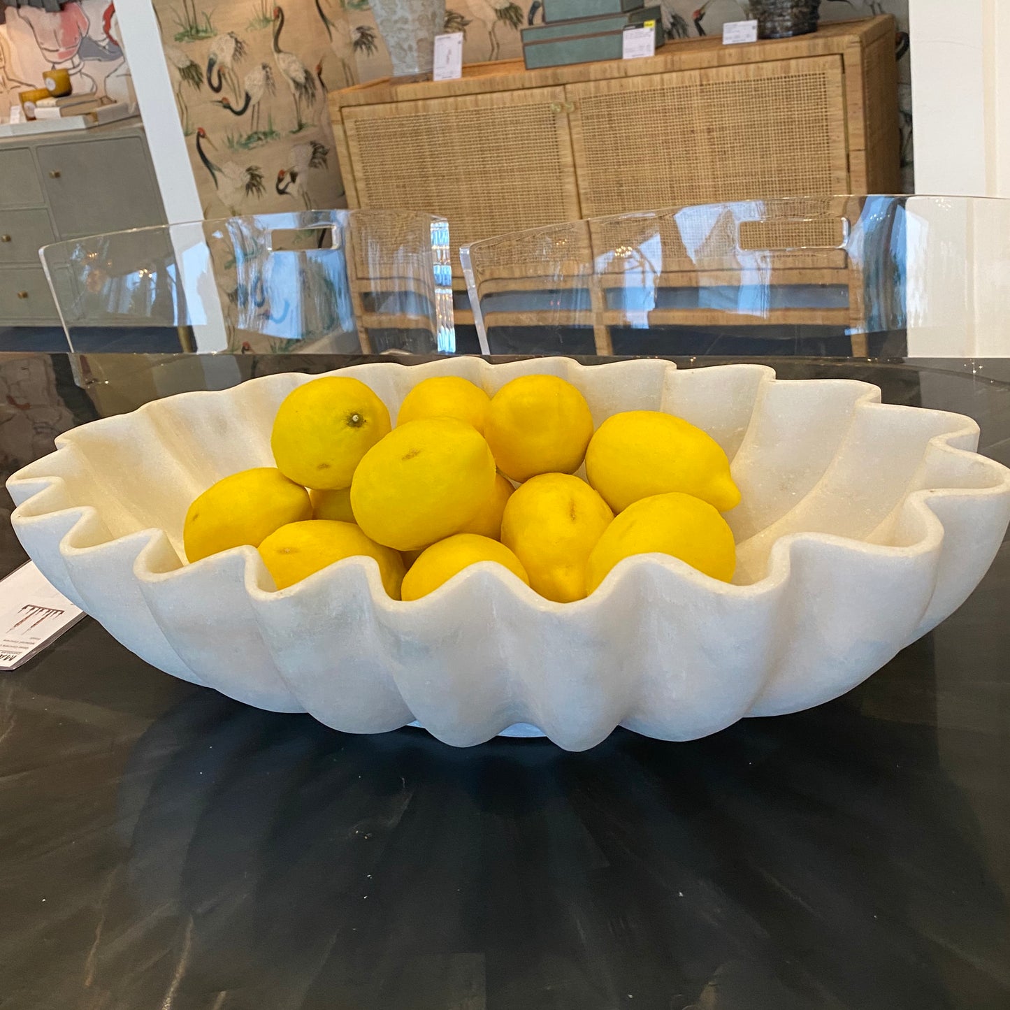 The Made Goods Darci Bowl in White Marble is the ultimate accessory for home decor. This carved tabletop accent suggests the undulating motion of the ocean.