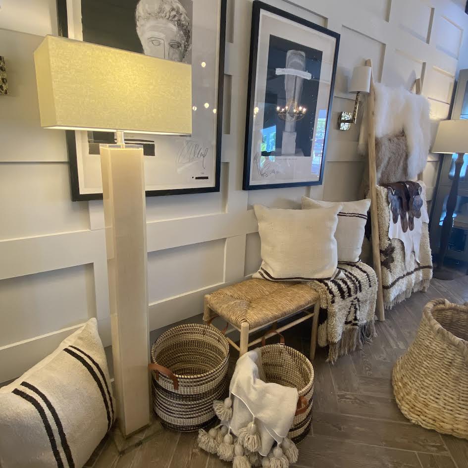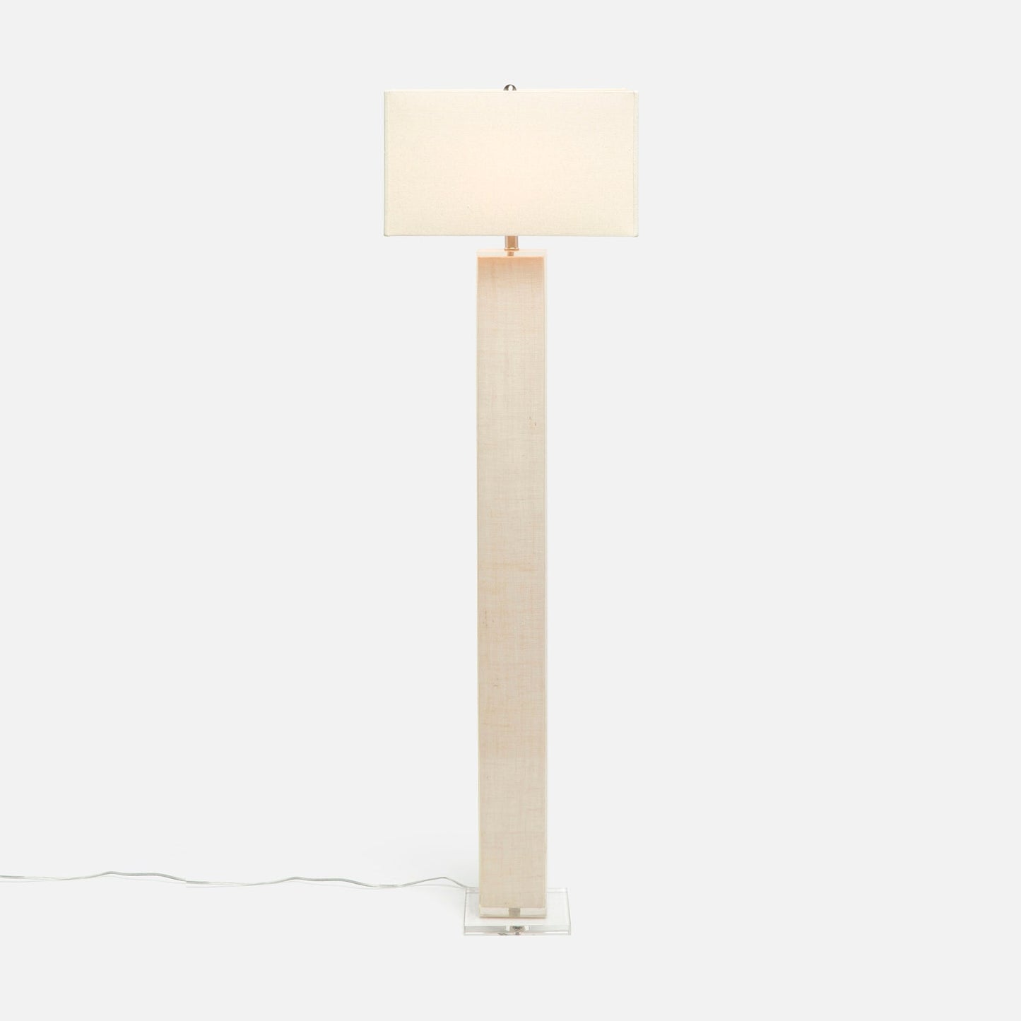 The Fabre Floor Lamp in Off White Burlap and Clear Resin from Made Goods delivers understated style to your home. The woven burlap finish of the Fabre's rectangular form is enhanced by a resin encasement. A crystal base adds to its organically modern charm.