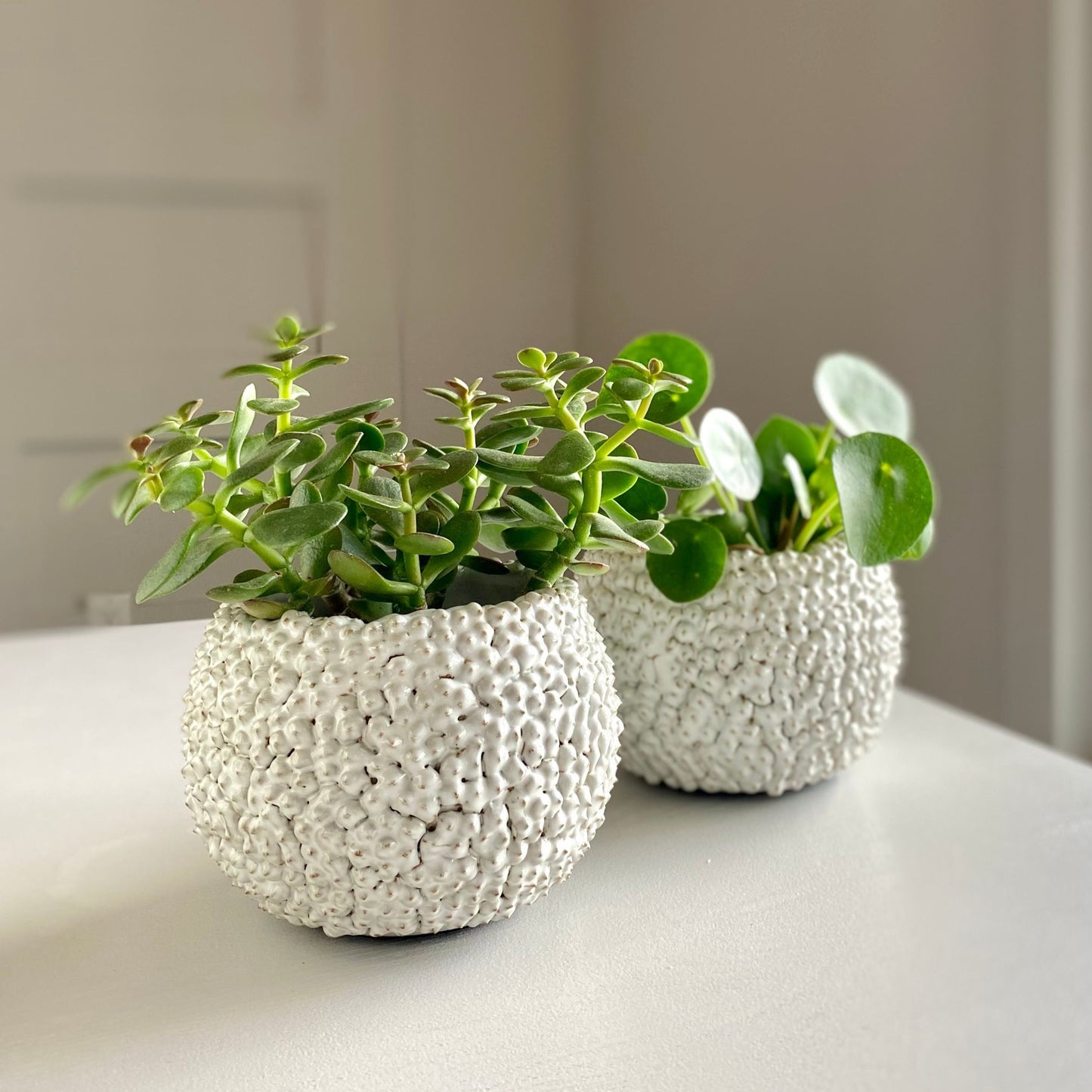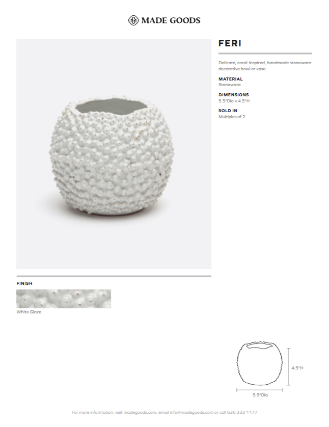 The Feri Vase Set White Stoneware by Made Goods features a refined coral-inspired design and can serve as both a vase and a bowl. Elevate the aesthetic of your dining table with this modern, versatile piece and adorn it with vibrant flowers or foliage for a coastal touch.
