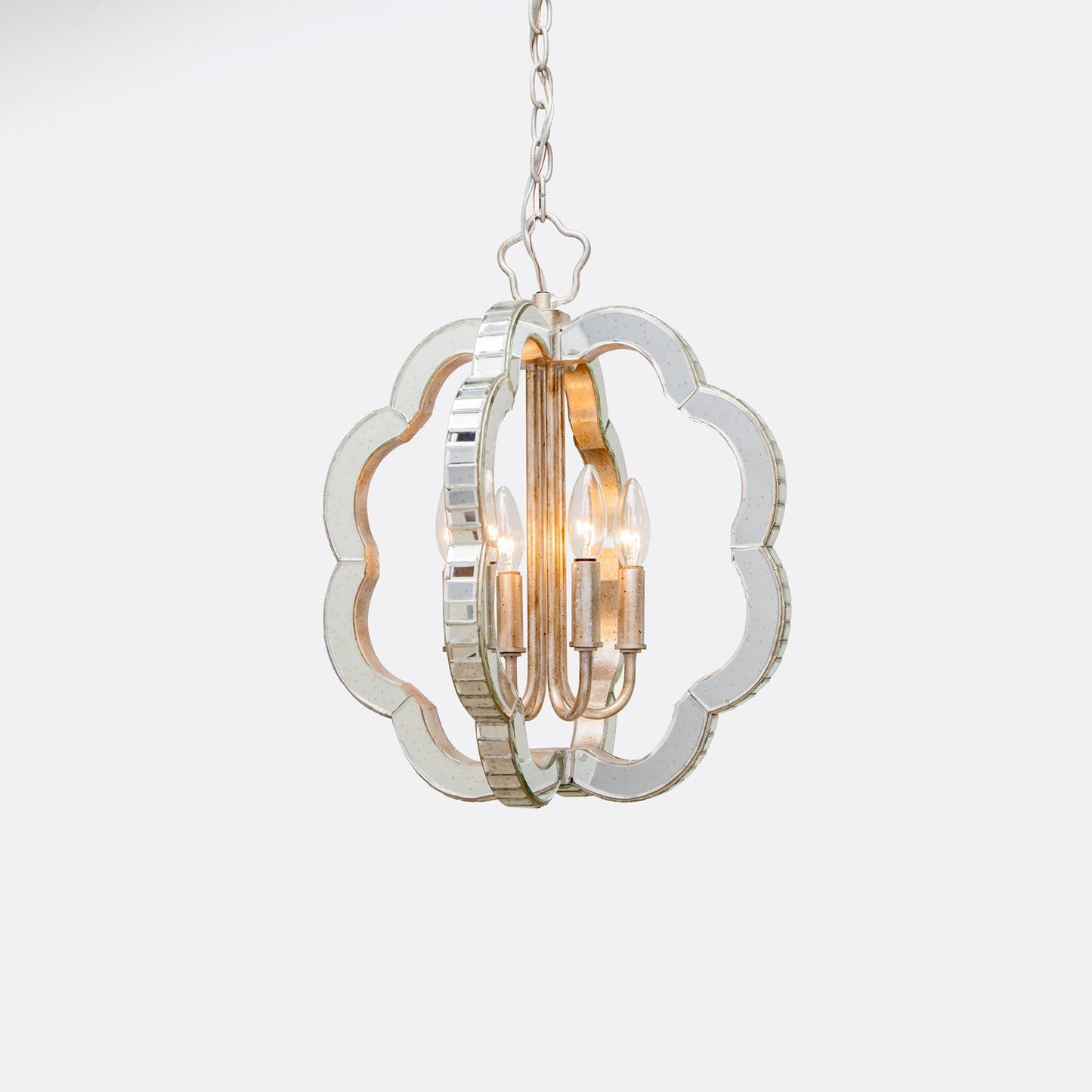 Silver Leaf; Mirrored Glass; 4 Light - Candelabra Bulbs; 60 max wattage;