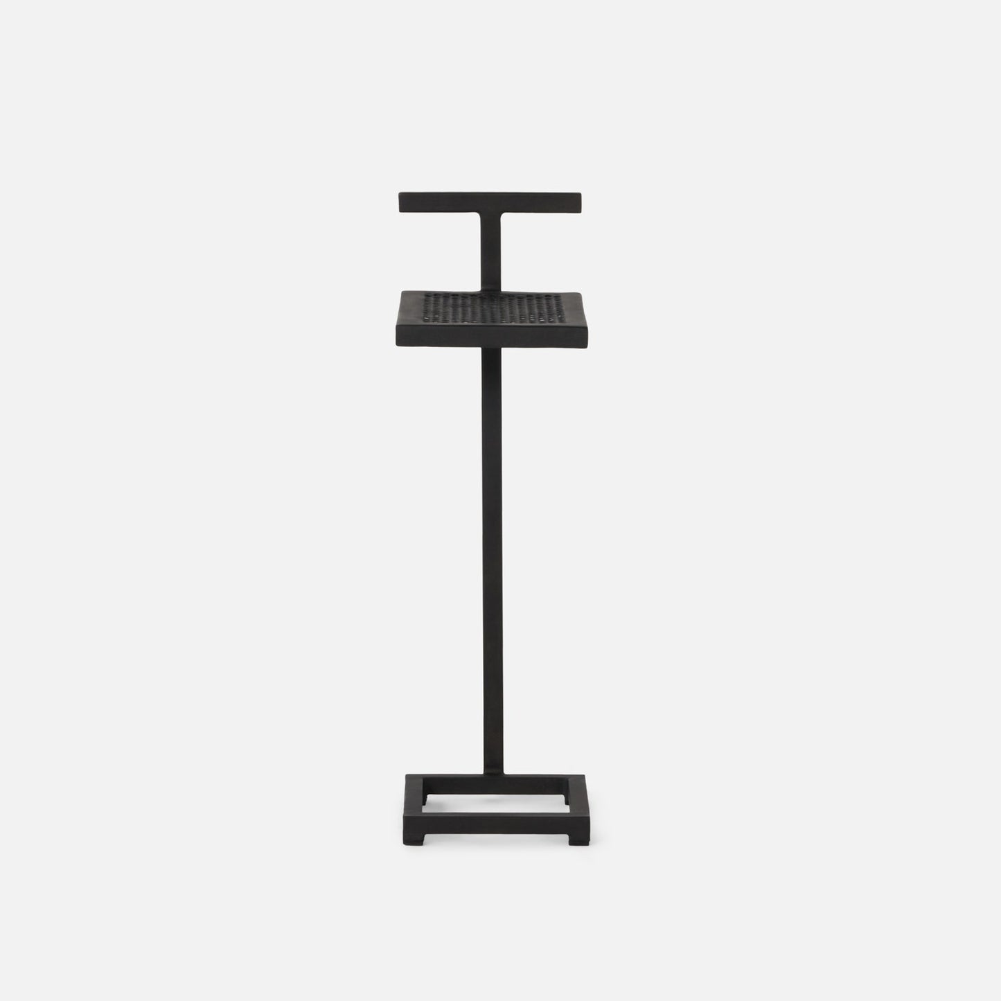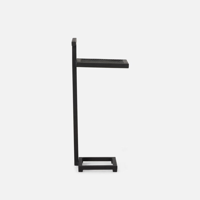 A versatile accent for outdoor entertaining, the metal Hadley Accent Table in Black Mesh Metal from Made Goods has a breathable mesh tabletop and a simple handle that makes it easy to pick up and move to where it is needed.