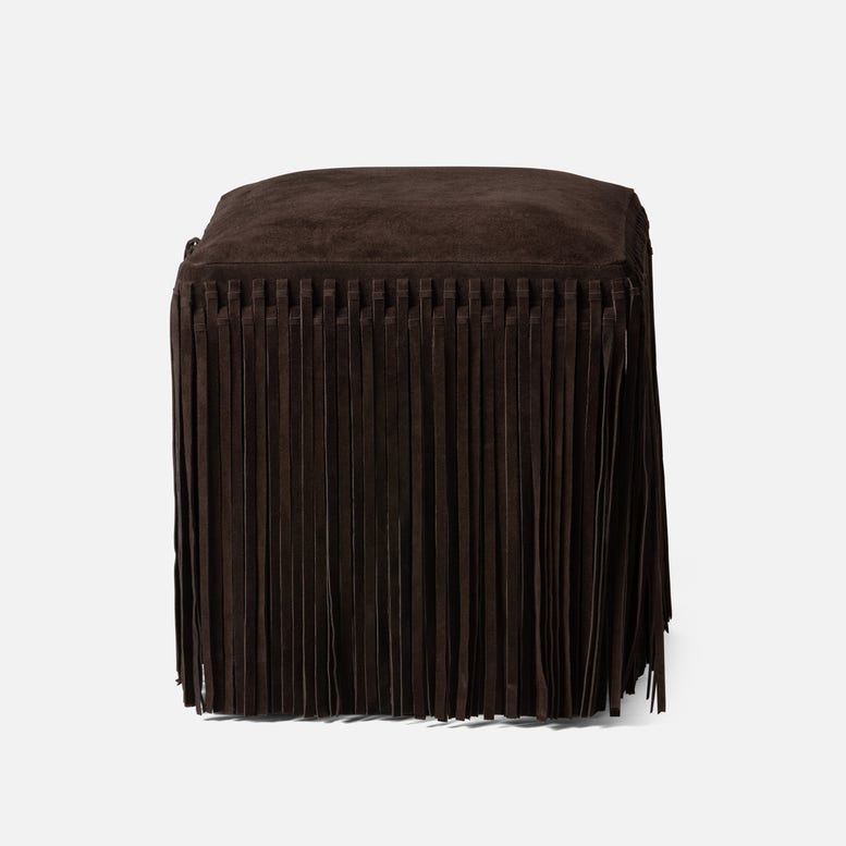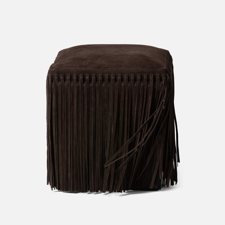 With fringed suede strips wrapped all around, the Hallie Stool in Chocolate Suede from Made Goods is a tribute to the roaring '20s. Fierce and glamorous, this stool is perfect for a vanity or a console.
