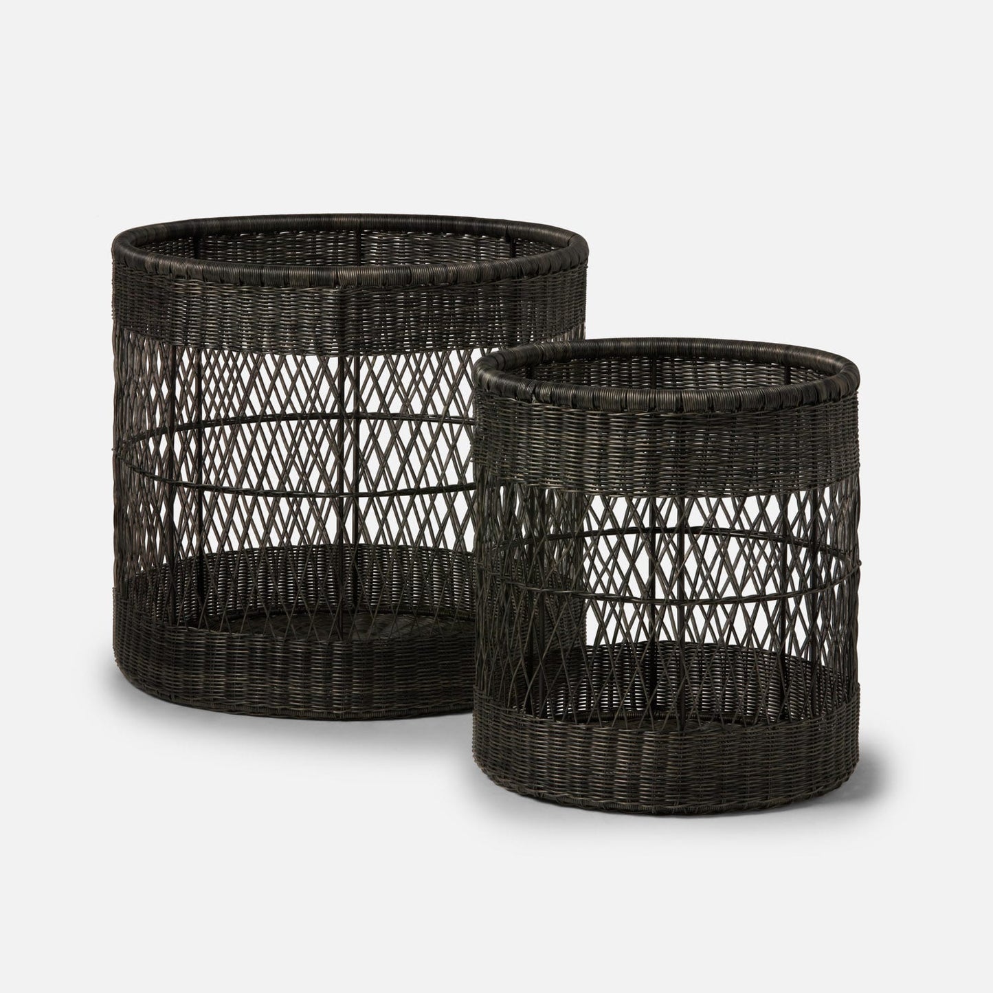 Henley Basket Set Graywashed Rattan by Made Goods is a lightweight and spacious storage solution, perfect for towels, pool toys, and outdoor belongings. Sold as a set of 2.