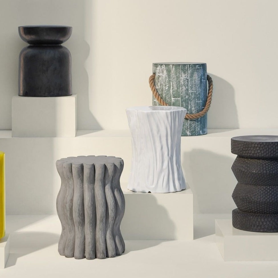 Rustic meets glam with the tree stump-inspired Hollis Outdoor Stool in Glossy White Ceramic finish from Made Goods. Use this chic and functional Hollis Stool for extra seating, a place for drinks, or as a display for a sculpture or a plant.