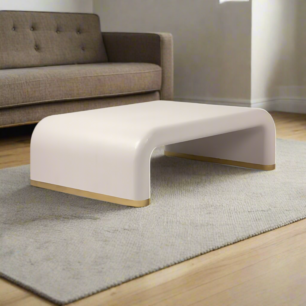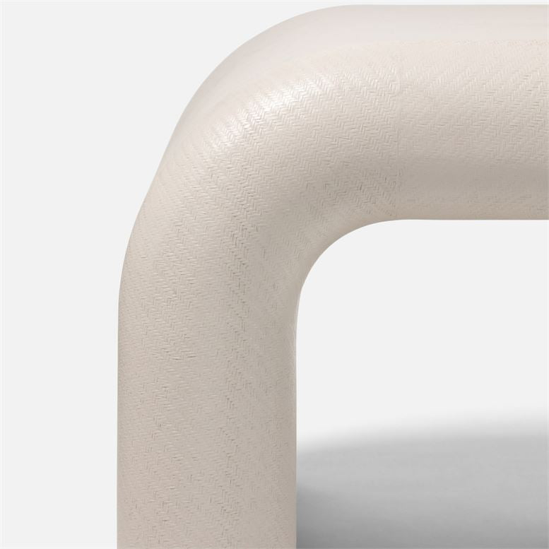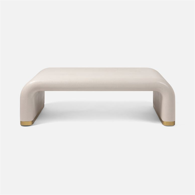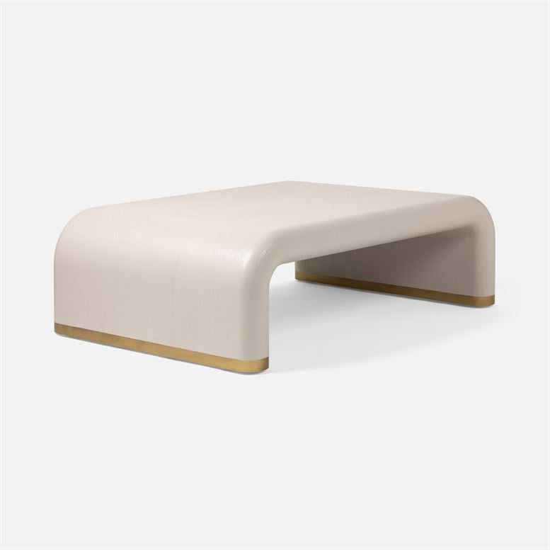 The contoured shape and faux rattan texture of the Hudson Coffee Table in Gray Faux Woven Rattan from Made Goods projects a sense of easygoing elegance. Fully finished on all sides with brass band detail, the Hudson is ideally placed in living spaces or offices for effortless contemporary style and superior functionality.