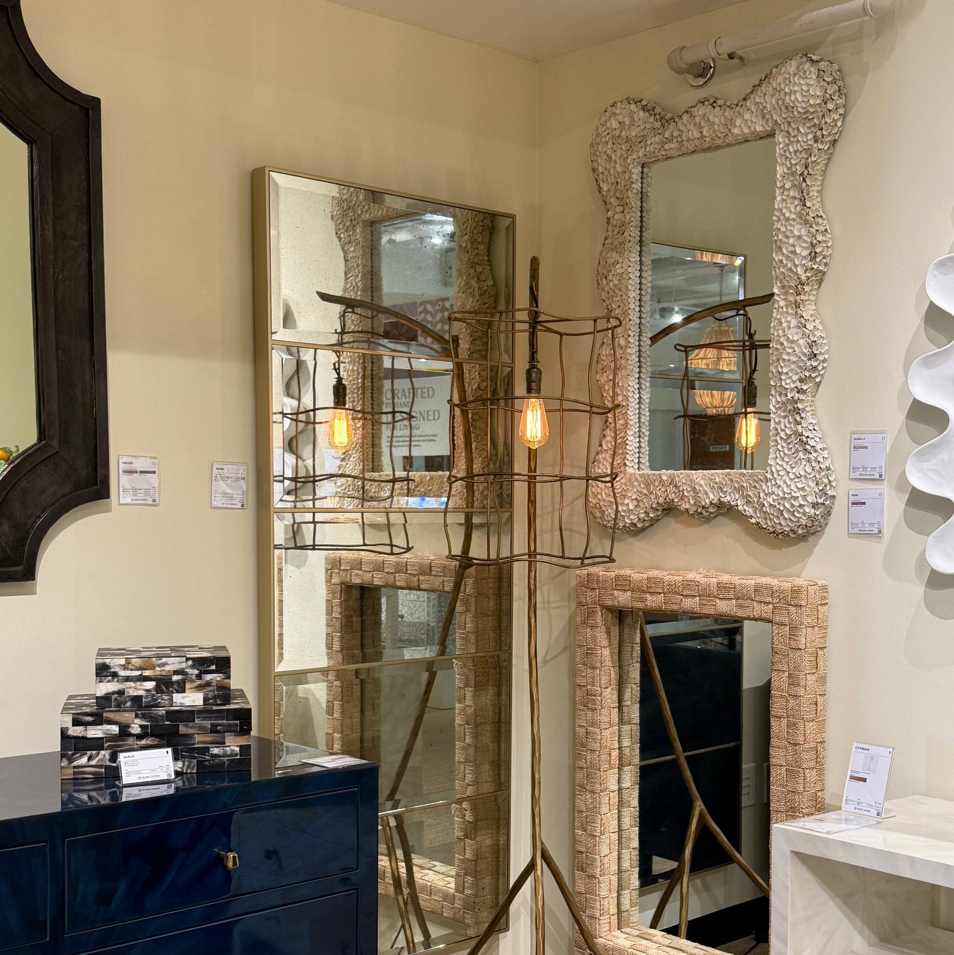 Providing a touch of elegance, the Isabella Mirror in Beige Shell from Made Goods evokes the intricate artistry of a skilled artisan's beadwork.