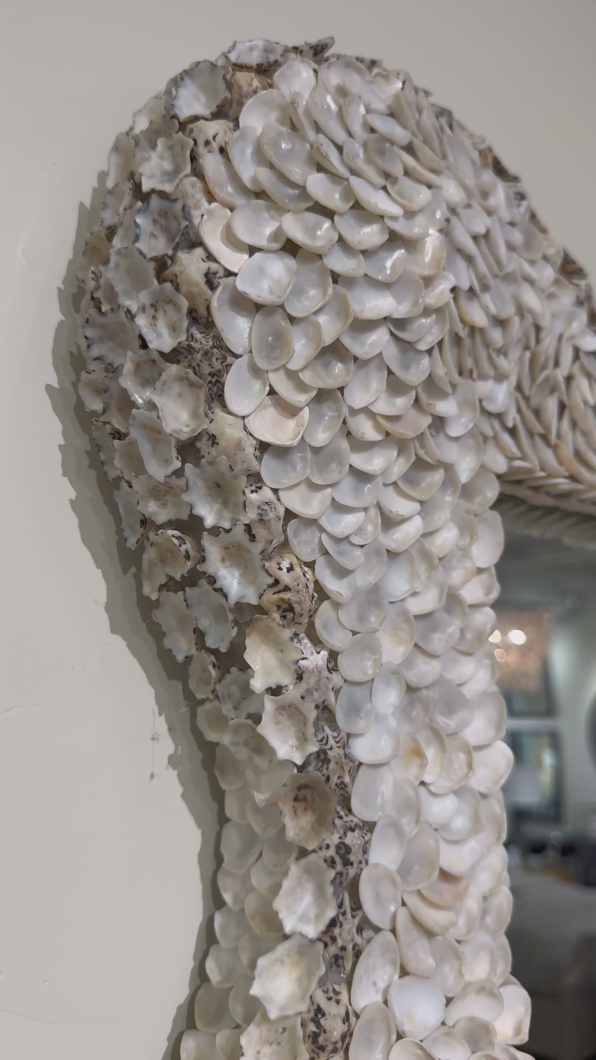 Providing a touch of elegance, the Isabella Mirror in Beige Shell from Made Goods evokes the intricate artistry of a skilled artisan's beadwork.
