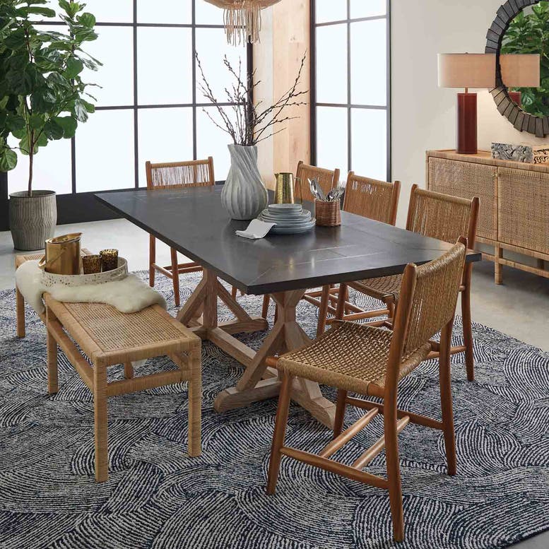 Elevate your seating with the Isla Bench in Natural Peeled Rattan. Choose from three lengths perfect for any space, crafted with durable hand-woven rattan. Variations expected.