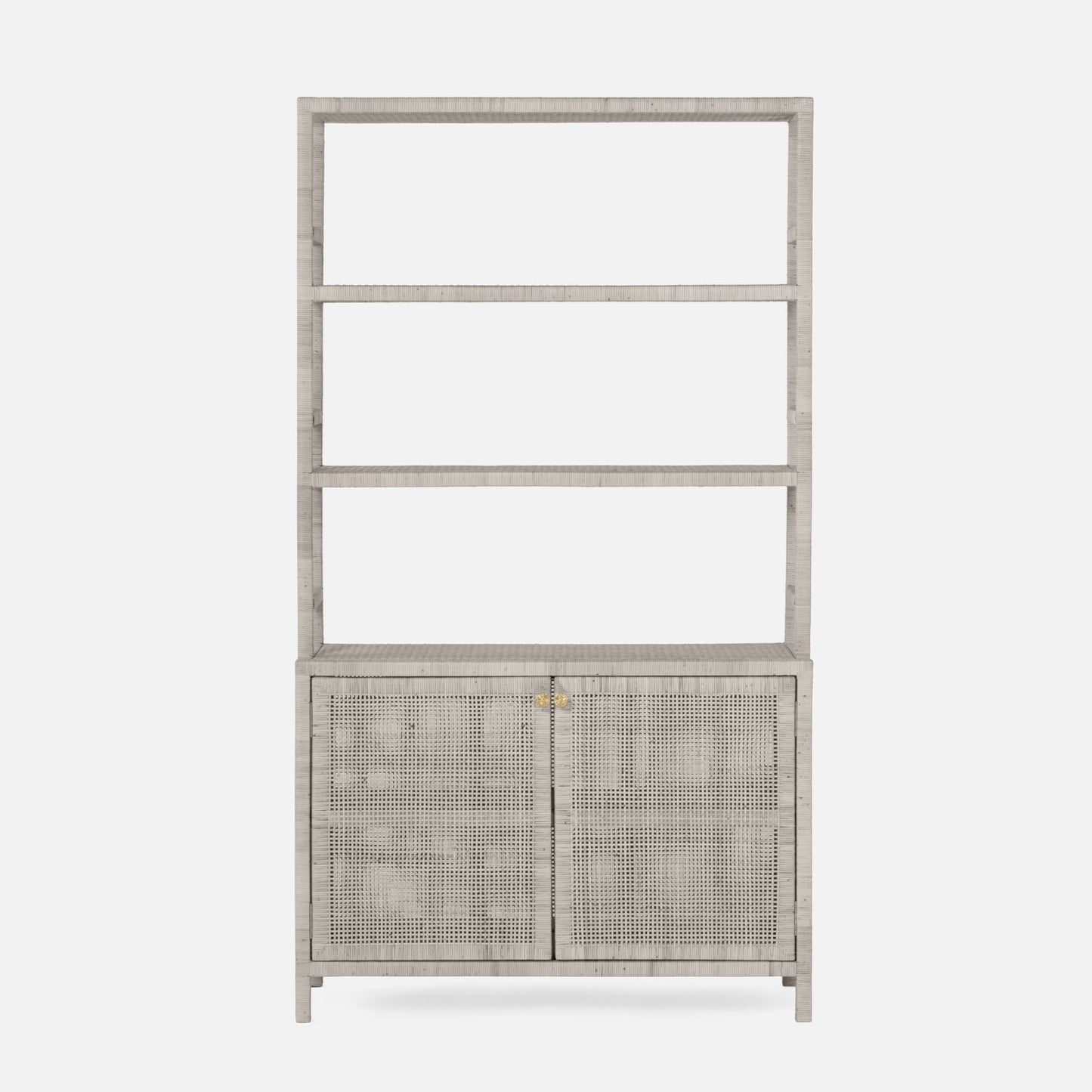 Isla Bookcase with Hutch French Gray Peeled Rattan